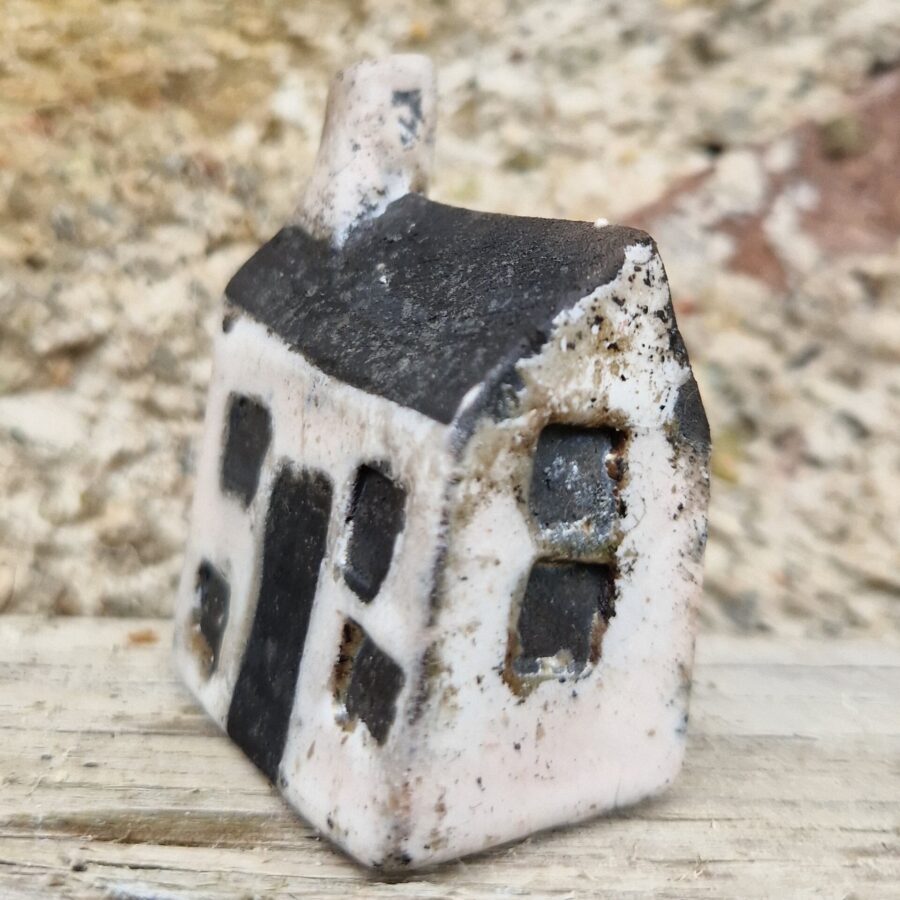This tiny bothy is hand sculpted and Raku fired in sawdust.