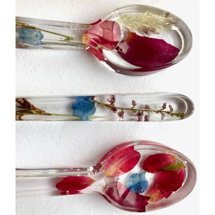 All the flowers used in these spoons have been grown in the artists Shetland garden, they have been preserved in crystal clear resin. Each spoon is original and varies in colour/flowers used. If you have a preferred colour please add into the comment box on ordering. Choose from purples, pinks, multi-coloured, greens or yellows