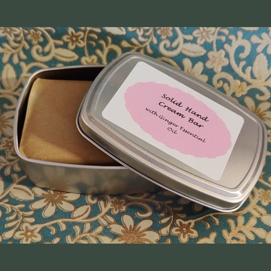 This solid hand cream bar completely sold out last year at my local markets! A fantastic treat for your hands and also the perfect gift for someone special. The bar is supplied in an aluminium tin which fits neatly into your handbag, pocket or luggage. It lasts for absolutely ages - all you need to do is hold the bar in your dry hands (no need for water)....and the heat from your hands will remove just enough "cream" to sooth and soften. The totally natural three ingredients are beeswax, coconut oil and refined shea butter. The addition of ginger essential oil gives the hand cream a lovely scent, while also providing a "warming" sensation, perfect for cold/aching hands.