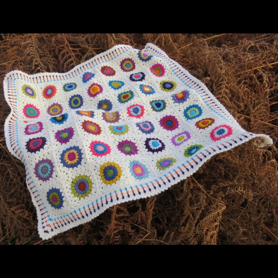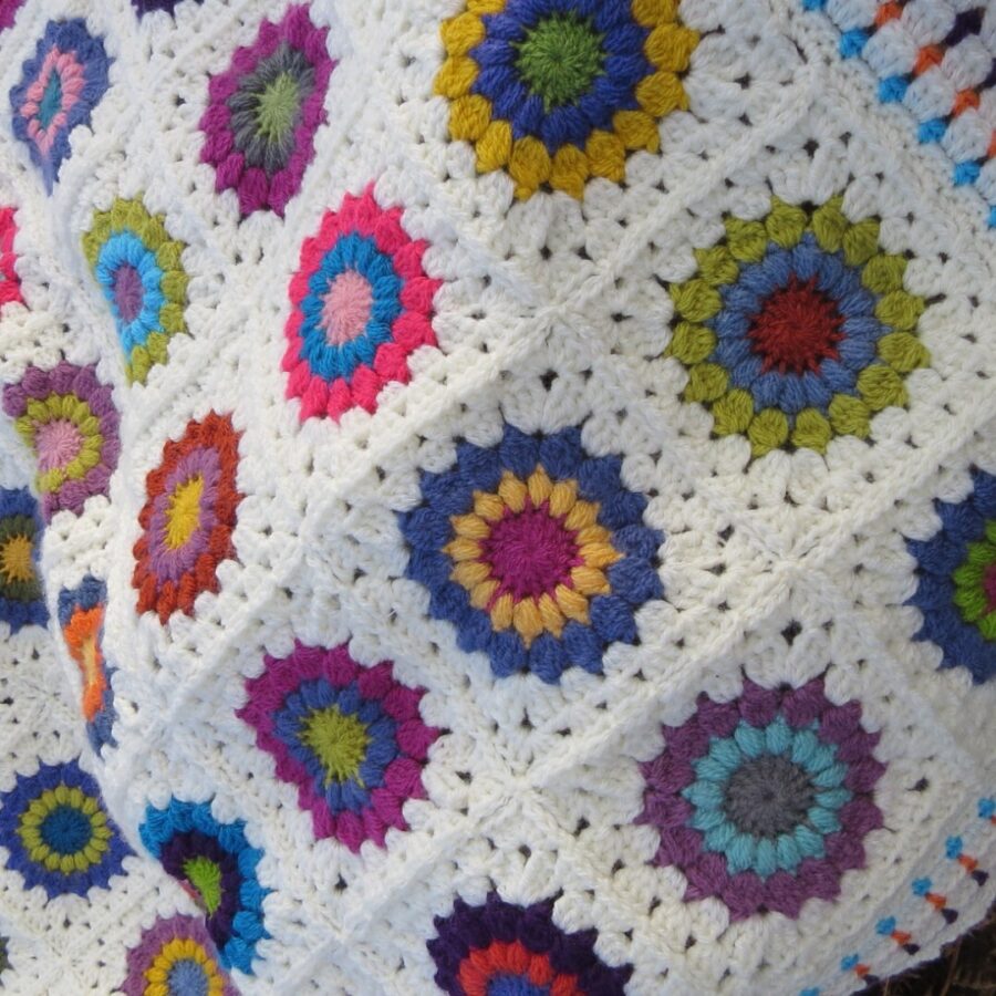 Looking for a unique and special crochet blanket for a baby or child? Look no further than this beautiful sunburst granny square crochet blanket. The blanket would keep your child warm, would soften any surface he or she was placed on and it would look amazing wrapped around him or her.