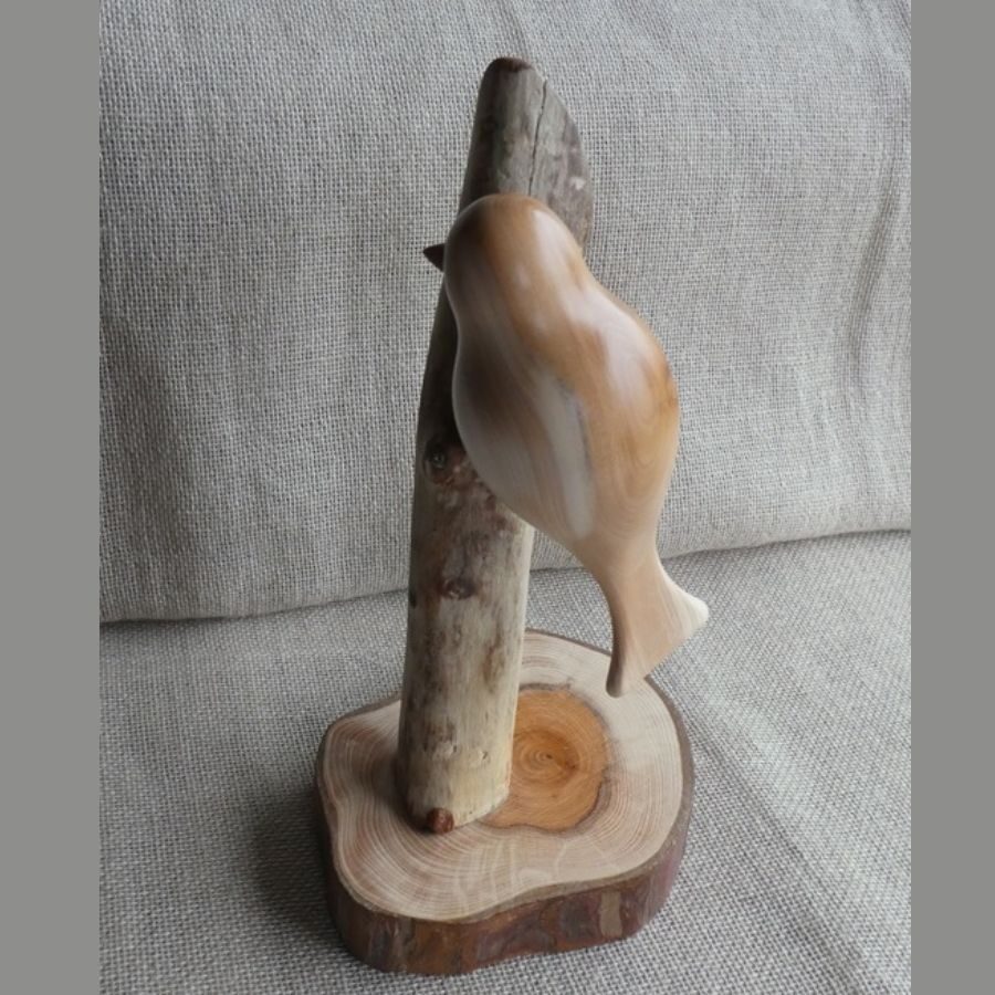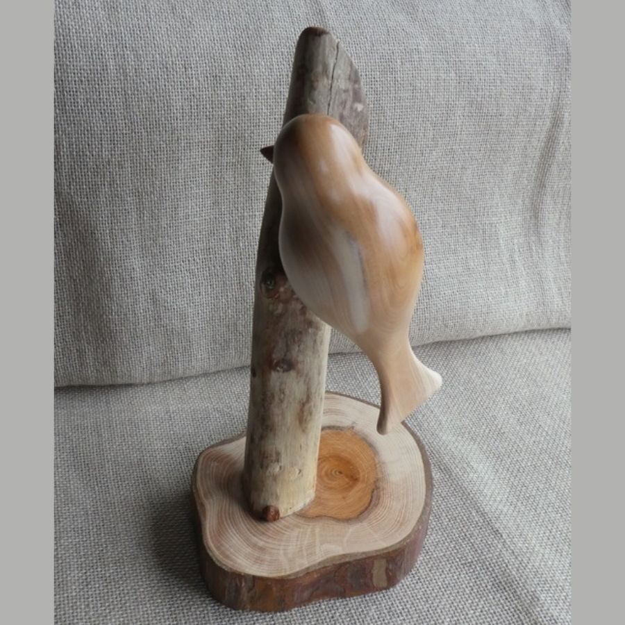 All bird sculptures made by Sward Designs are unique and are hand crafted from natural wood. The wooden birds are turned on a lathe, hand finished to produce a shaped tail and a beak, then polished with a splash resistant wax. Birds are mounted on pieces of driftwood, collected from Scottish beaches and set on wooden bases. This is the ideal gift for a bird lover and for someone who appreciates the natural beauty of wood.