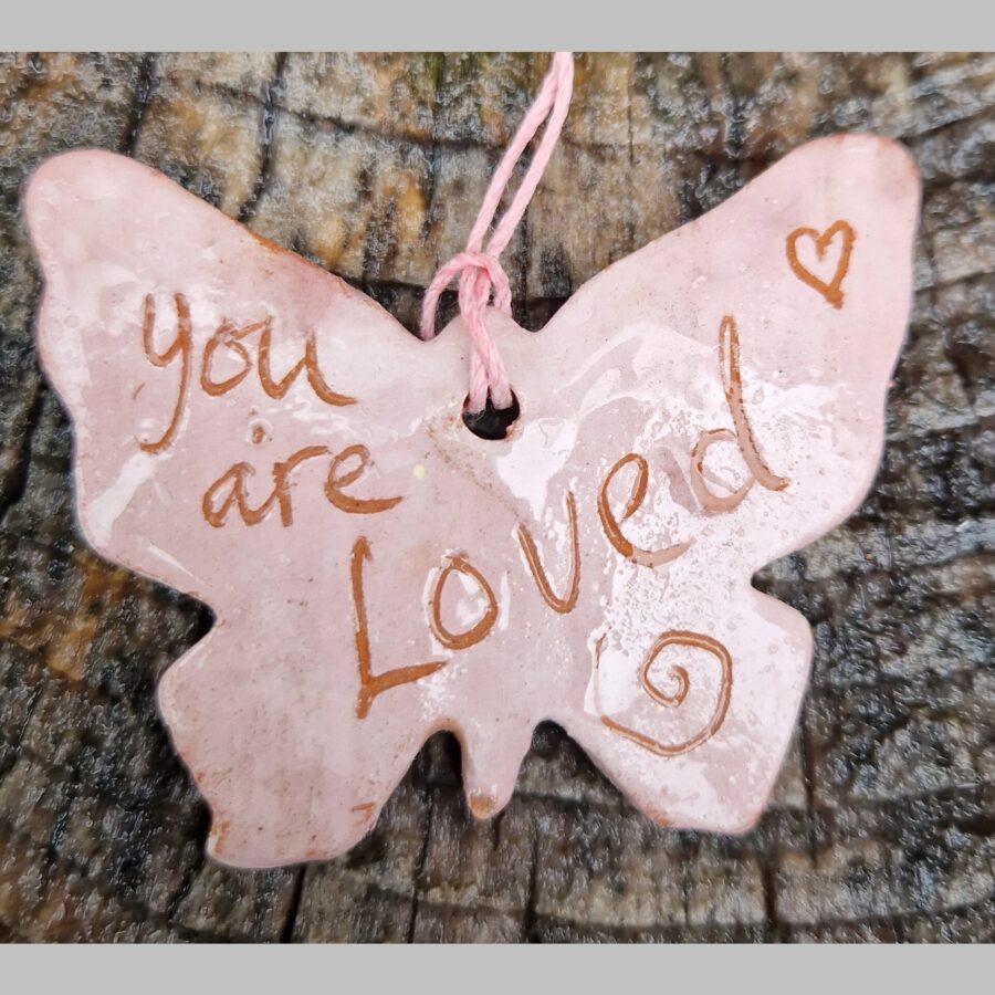 "You Are Loved" Pink Butterfly Hanging Decoration
