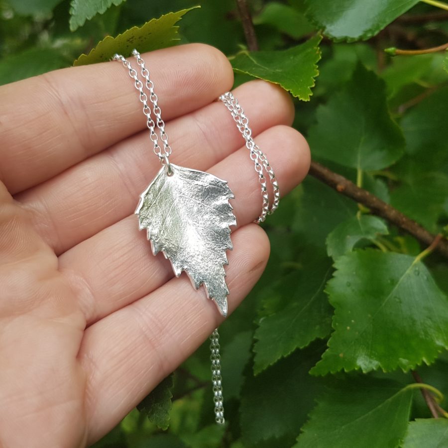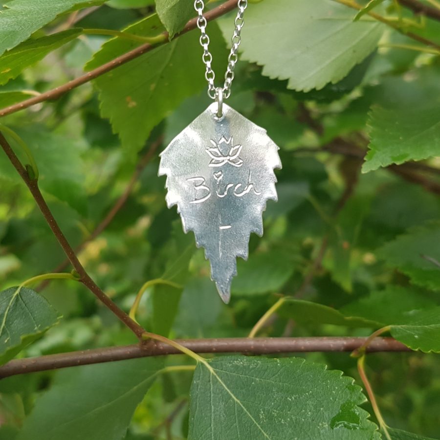 This lovely necklace is made from a fine silver birch leaf, it hangs from a sterling silver chain. In the celtic tree calendar, birch is known as the 'achiever' and symbolises birthdays between December 24th to January 20th. On the back of the leaf is engraved its name and Ogham in the celtic alphabet. It will come gift boxed.