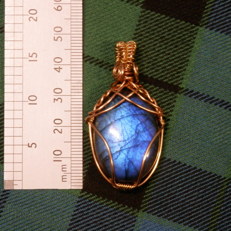 This is a beautiful labradorite gemstone that has been lovingly wrapped in tarnish resistant brass wire to make into a pendant. The stone is a gorgeous blue-grey colour, with blue to purple rainbow effect flashes