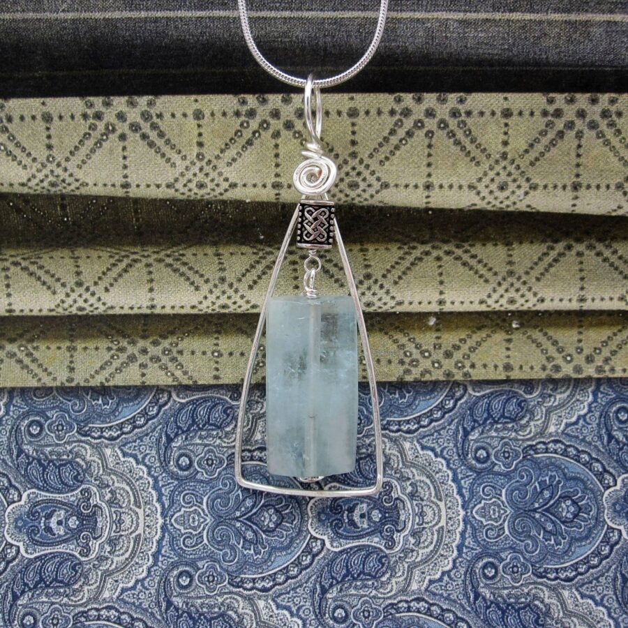 The design for this pendant calls on the maker’s love of the sea and Celtic art, and it features the beautiful frozen ice blue tones of the gemstone aquamarine. Combining the Latin word aqua (meaning water) and marine (’from the sea’), Aquamarine is traditionally connected to the tides, the moon and femininity, and is also the birthstone for Pisces.