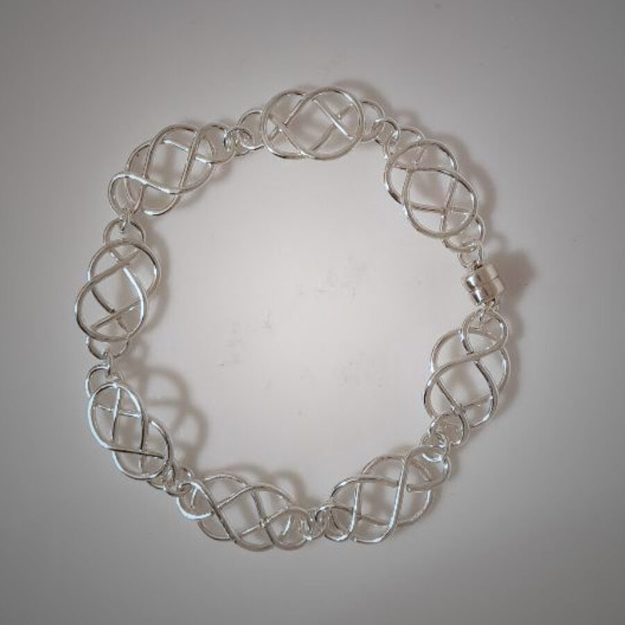 A pretty bracelet featuring a chain of Celtic knots made in sterling silver and with a discreet magnetic catch. All items are gift boxed with recyclable packaging.