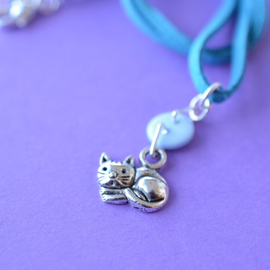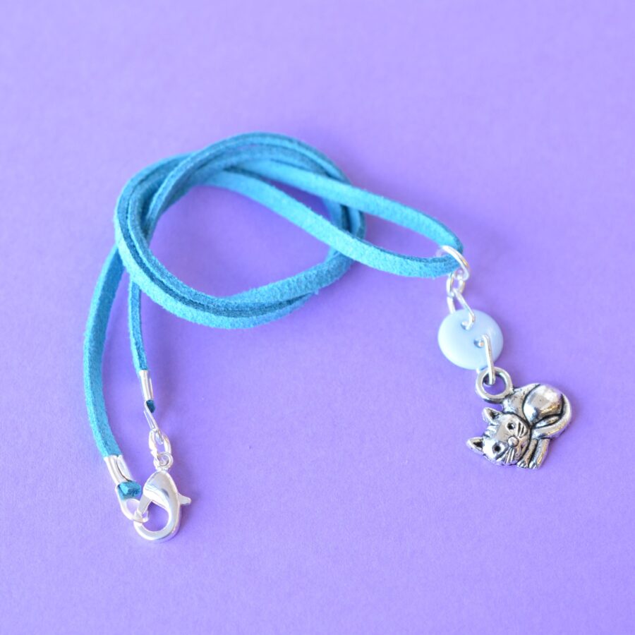 Child’s Blue Cat Button Charm Necklace