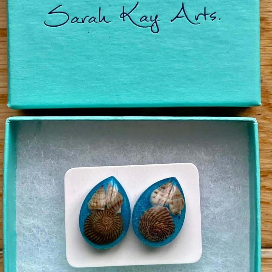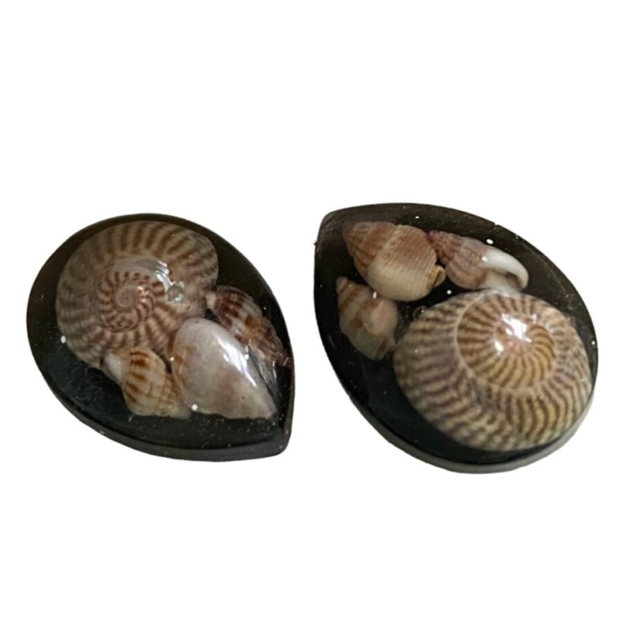 Original chunky studs made by Sarah. Beautiful tiny shells collected from beaches around The Shetland islands, preserved in resin for you to treasure.