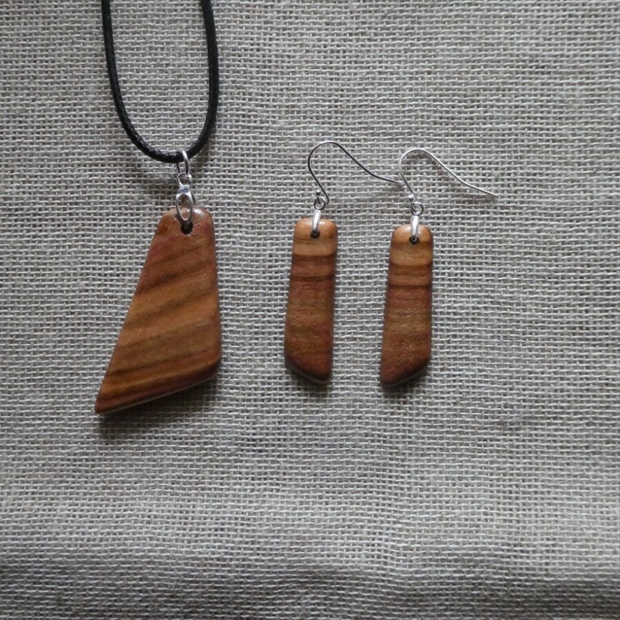 These earrings are handcrafted from natural wood without the use of paint or dye. Each piece of wood has been individually turned or hand cut, then sanded and finished with a clear toy-safe lacquer. This type of finish enhances the fantastic range of colours and patterns found in natural wood. Each piece of wood has its own individual fingerprint, so each pair of earrings will be truly unique. Earrings are presented in a black card presentation box, with a label detailing the wood type.