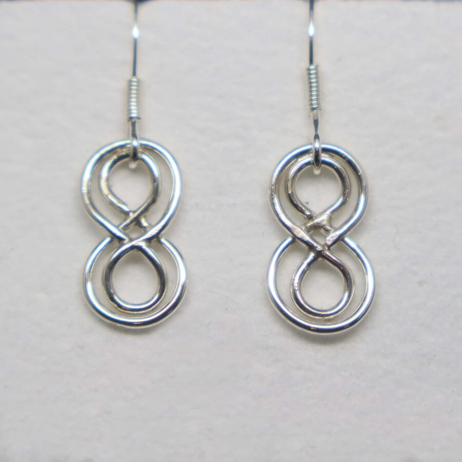 A pretty pair of sterling silver earrings featuring a double eight shaped design. All items are gift boxed with recyclable packaging.