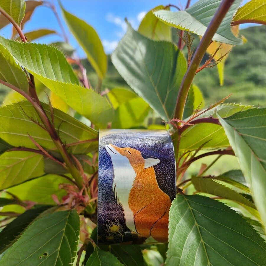 This gorgeous wide cuff bracelet features "The Fox and the Moon" artwork by Hannah MacIver. It is made from aluminium. Hannah prints and makes the artwork transfers then slides them onto the aluminium she has previously bent into the cuff shape. Once dried she sands the edges and seals them with a coat of UV resin. As these are handmade the finish for each will be slightly differently. Available as narrow or wide cuff, select your preference using the drop down menu.