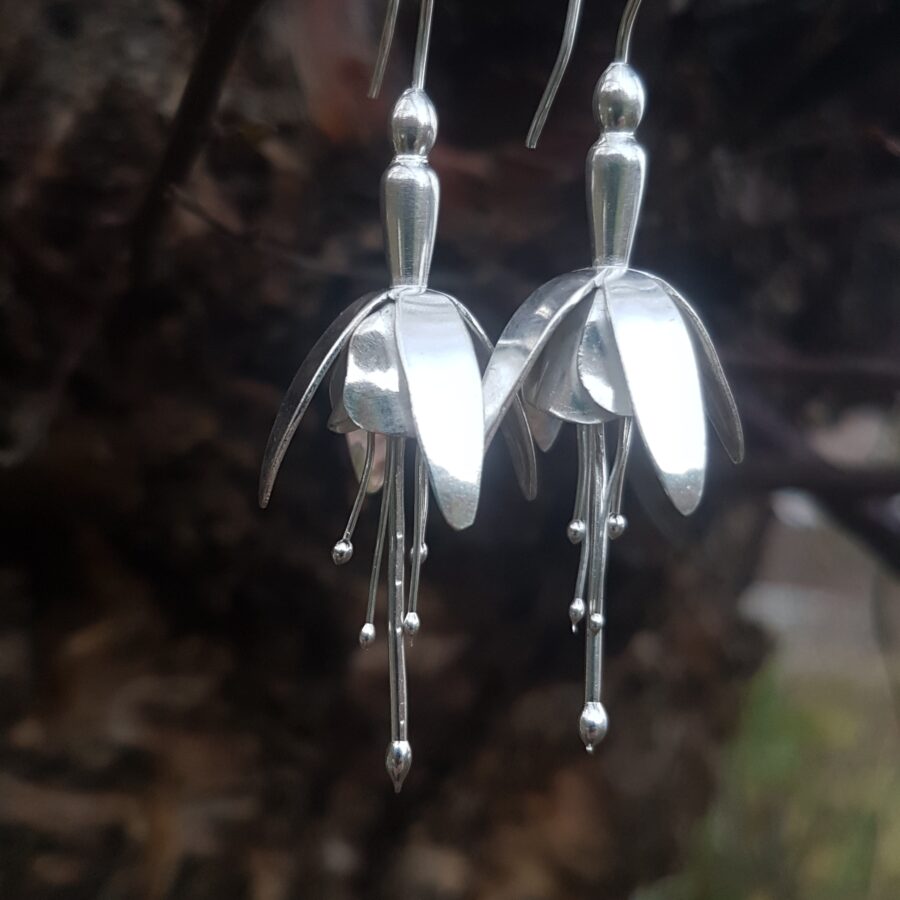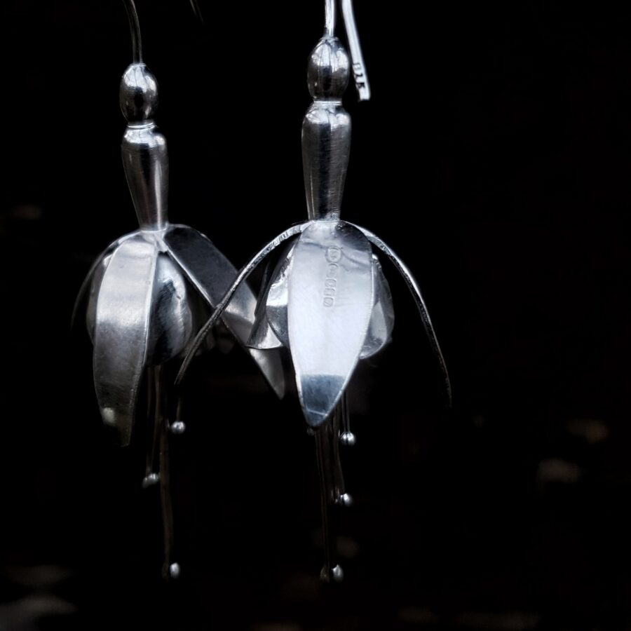 These stunning fuchsia earrings are handmade with sterling silver and hallmarked by the Edinburgh Assay Office.