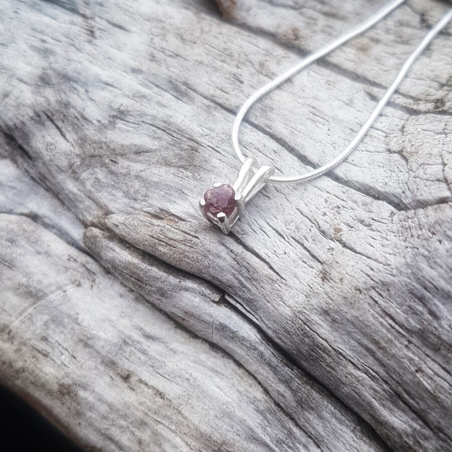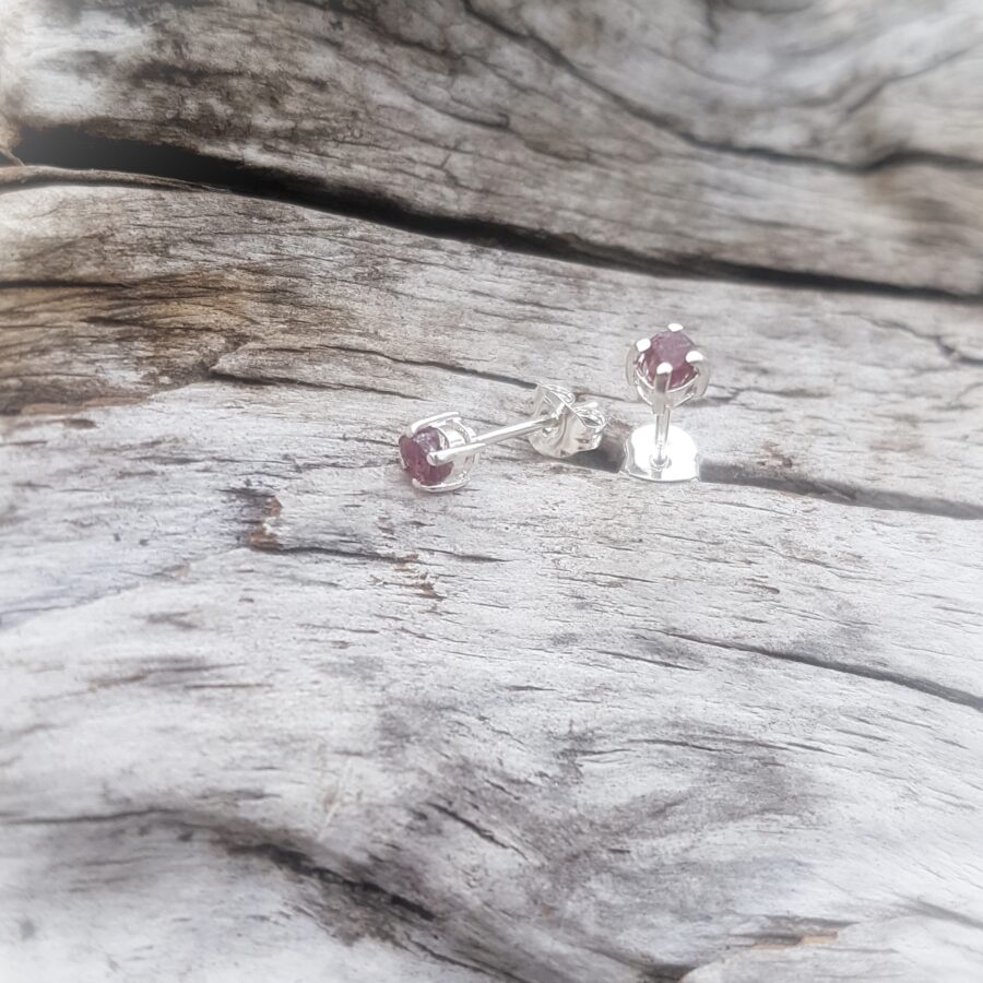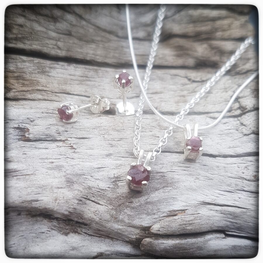 These lovely stud earrings and necklace are made from sterling silver and each carries a beautiful 3 mm garnet gemstone. The necklace is on a 18 inch snake chain.The garnet is sourced by Saffron, found in a local river in the Highlands of Scotland. Garnet is the birthstone for January and the root Chakra. These earrings will come gift boxed.