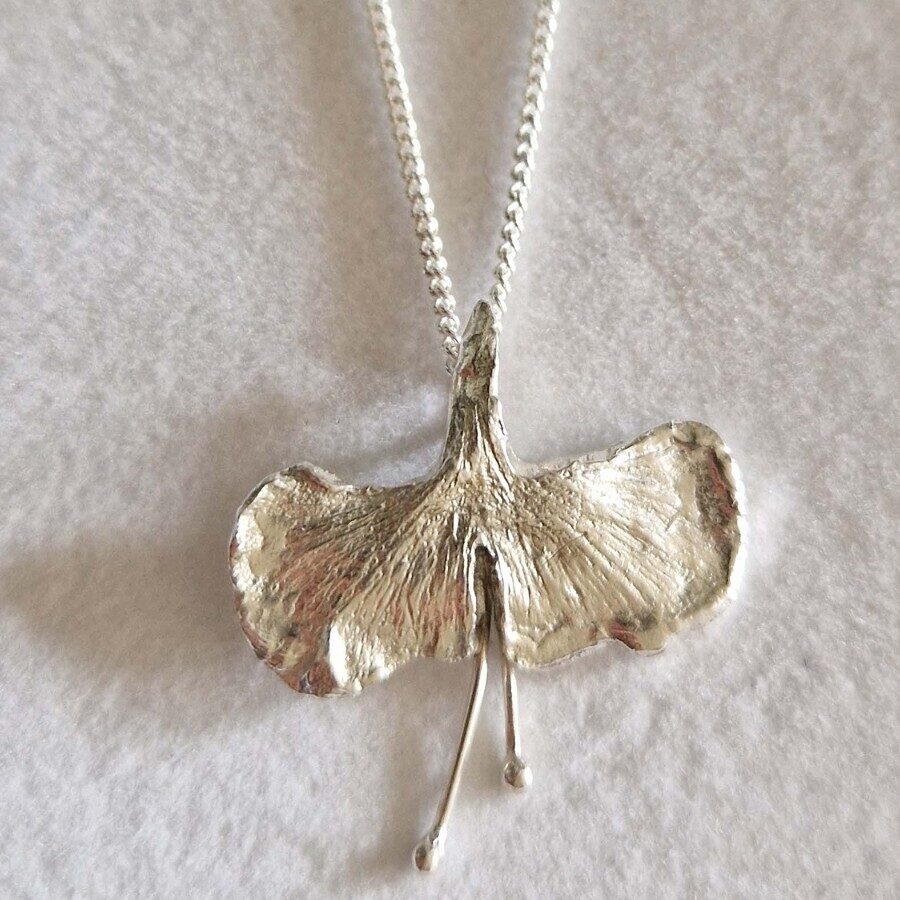 A beautiful pendant of fine silver ginko leaf on an 18" sterling silver chain. All items are gift boxed with recyclable packaging.