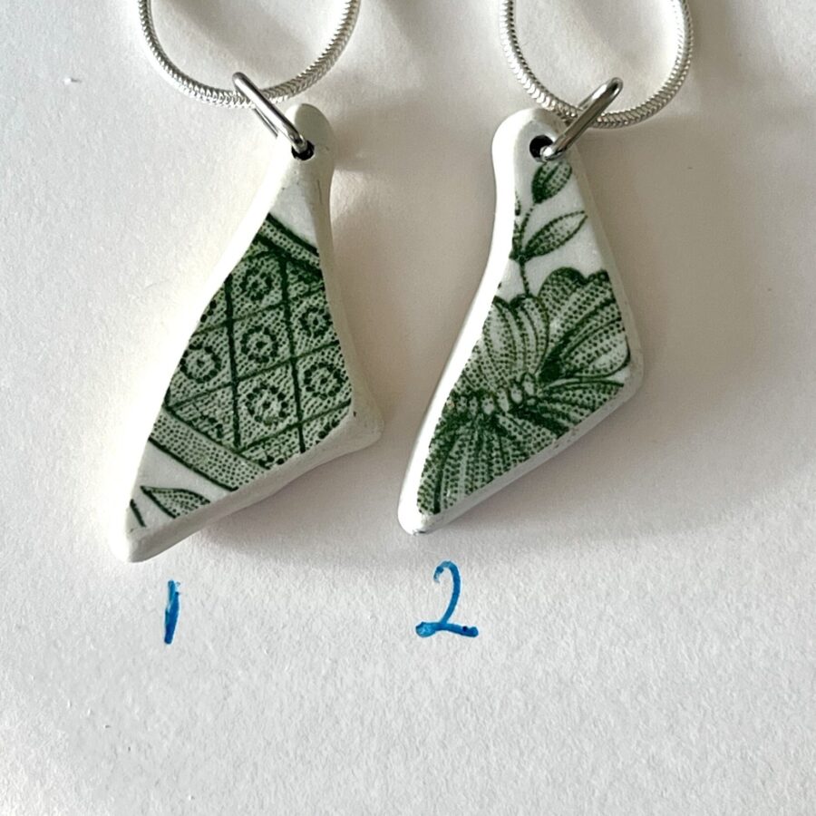 Lovely sea pottery pendants from The Shetland Isles. Each piece has been collected from the beach, sorted, cleaned, sanded and drilled! Finished with a steel jump ring and a 18 inch sterling silver snake chain. Comes in a green satin gift pouch with info card.