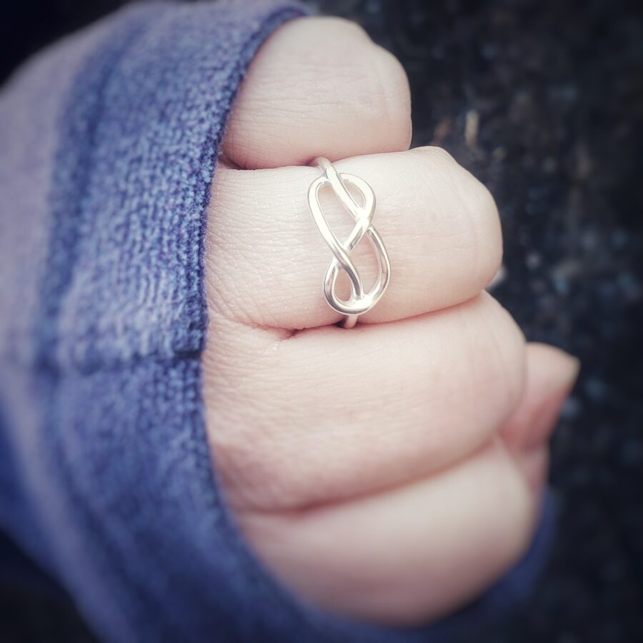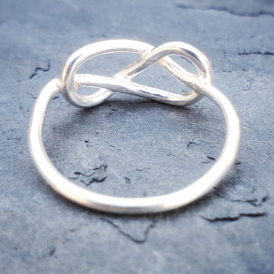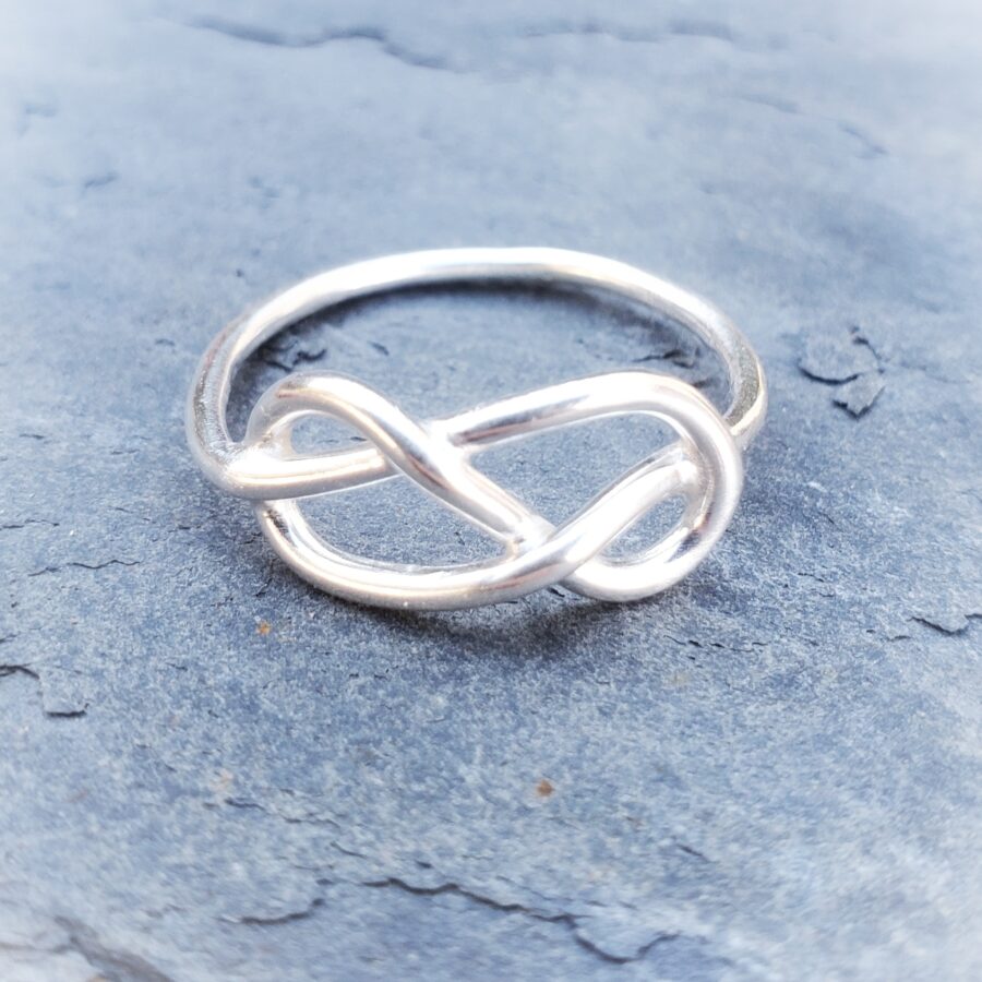 A pretty Celtic knot infinity ring made with sterling silver, soldered together for strength, made in your size therefore please allow two weeks to make. If you are unsure of your size, please buy one of our reusable ring sizes reusable ring sizer as well and we can send it out to you first, so you can confirm your size post purchase or use this size chart. If you know your size please add in the comment box when ordering.