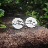 These sterling silver stud earrings are hand stamped with a leaping hare, and given a patina to highlight the design. They have sterling silver posts and scrolls and will come gift boxed.