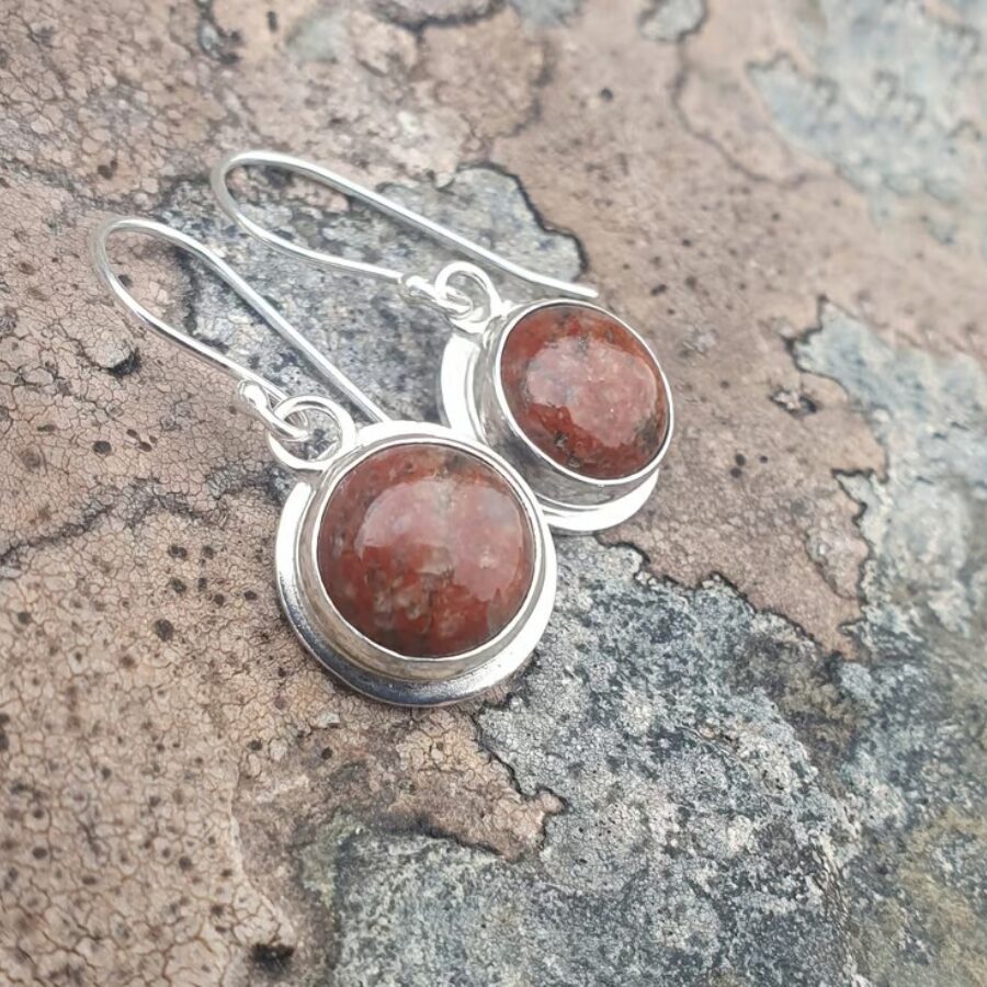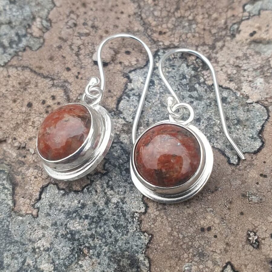 These stunning earrings are made from fine and sterling silver and feature 10mm round Lewisian Gneiss stones. Lewisian Gneiss is an ancient gemstone from the north west of Scotland, taking its name from the Isle of Lewis, said to be dated between 1.7 and 3 billions years old (two thirds of the age of the earth itself). The stones hang from sterling silver ear wires measuring 29 mm from the top of the hook to the bottom of the earrings. This item comes gift boxed and is sent special delivery.