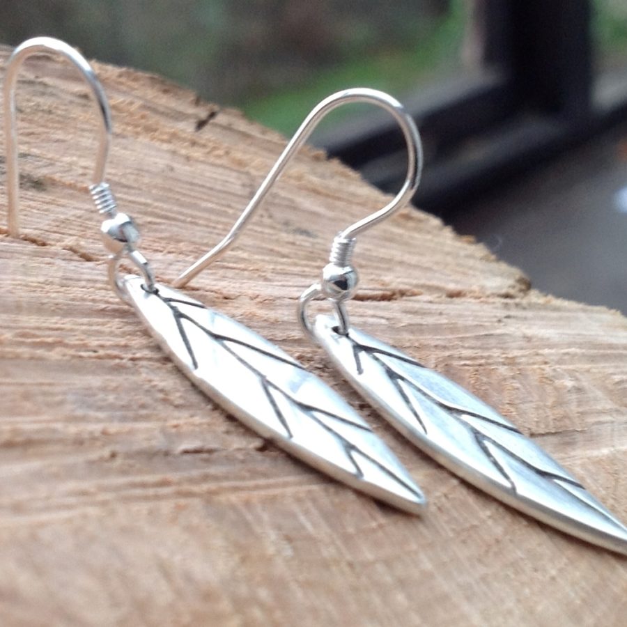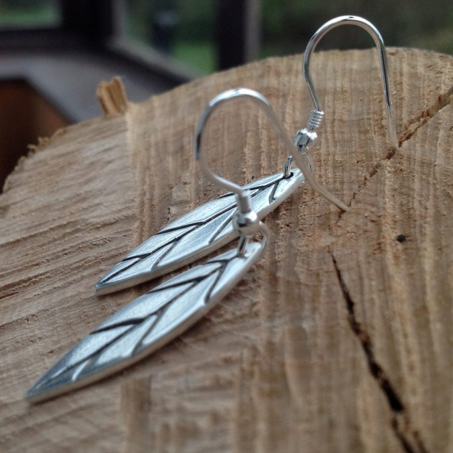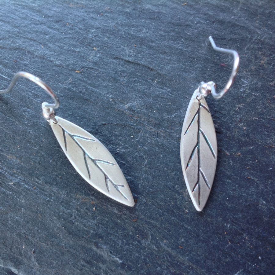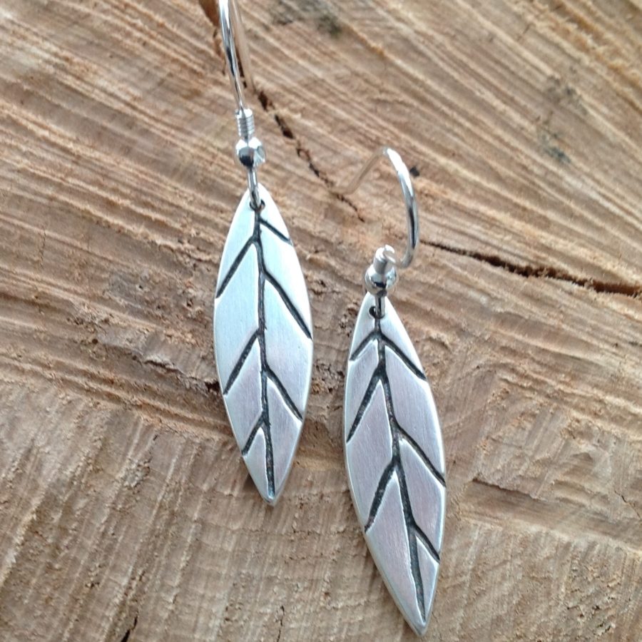 These stunning silver dangle woodland leaf earrings have a brushed silver finish and oxidised black carved veins. Handcrafted, each leaf is individually shaped and the veins are carved by hand. Nature lovers will adore these silver woodland creations.
