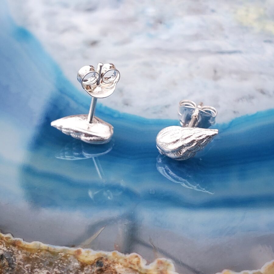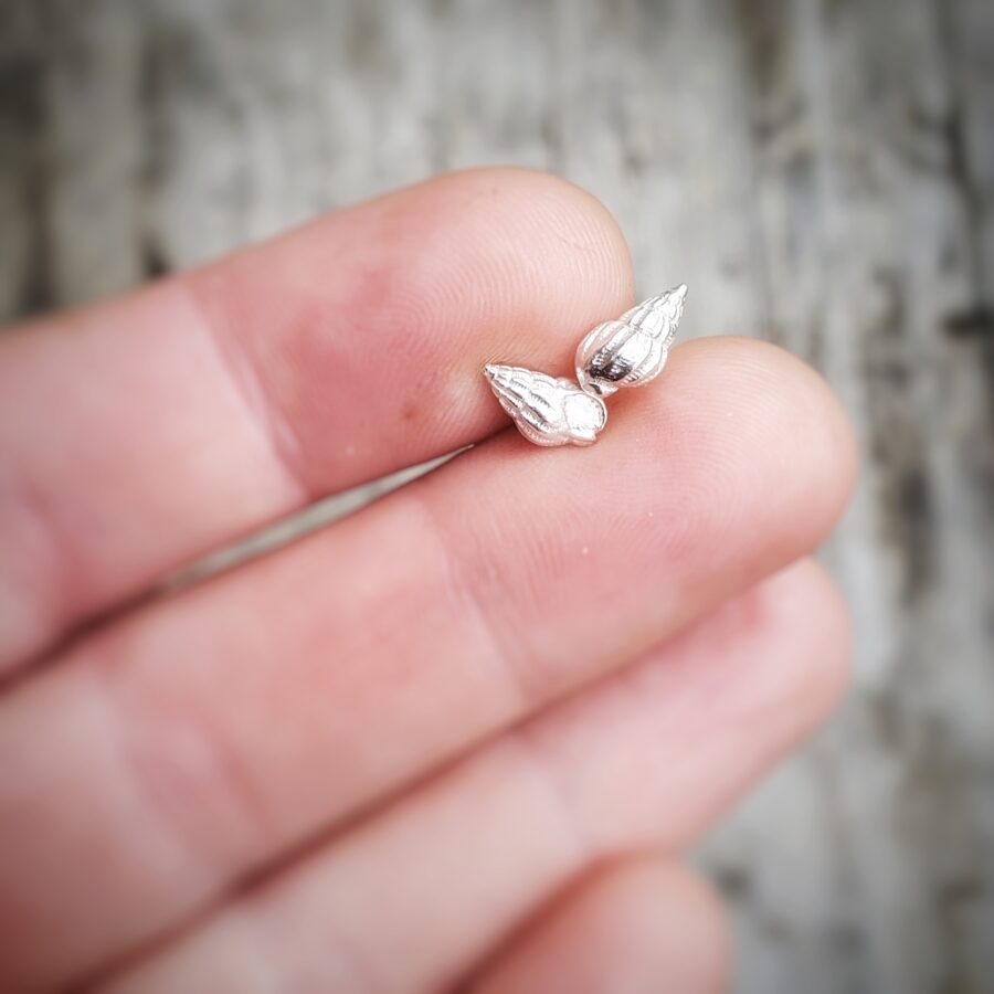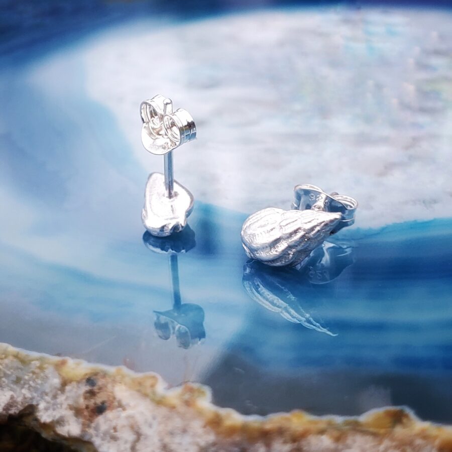 These gorgeous netted whelk studs are solid fine silver, with sterling silver posts and scrolls. They will come gift boxed.