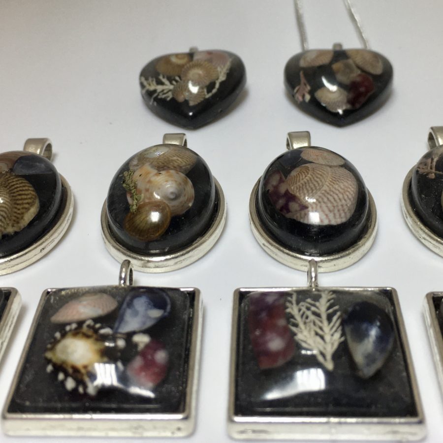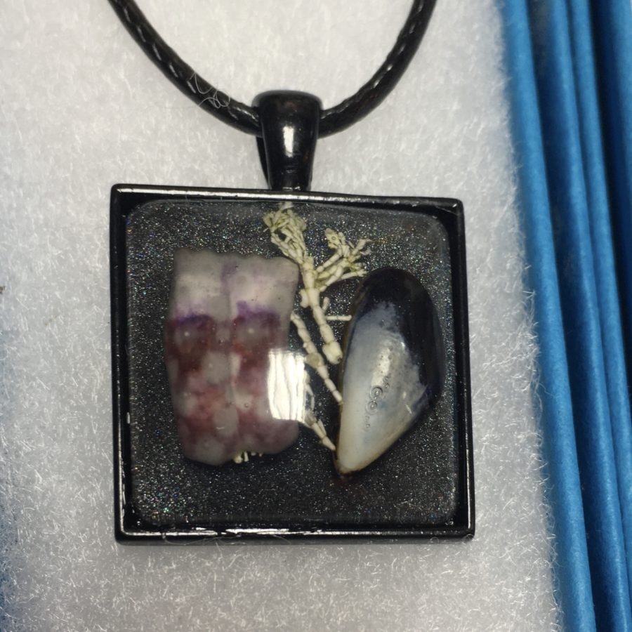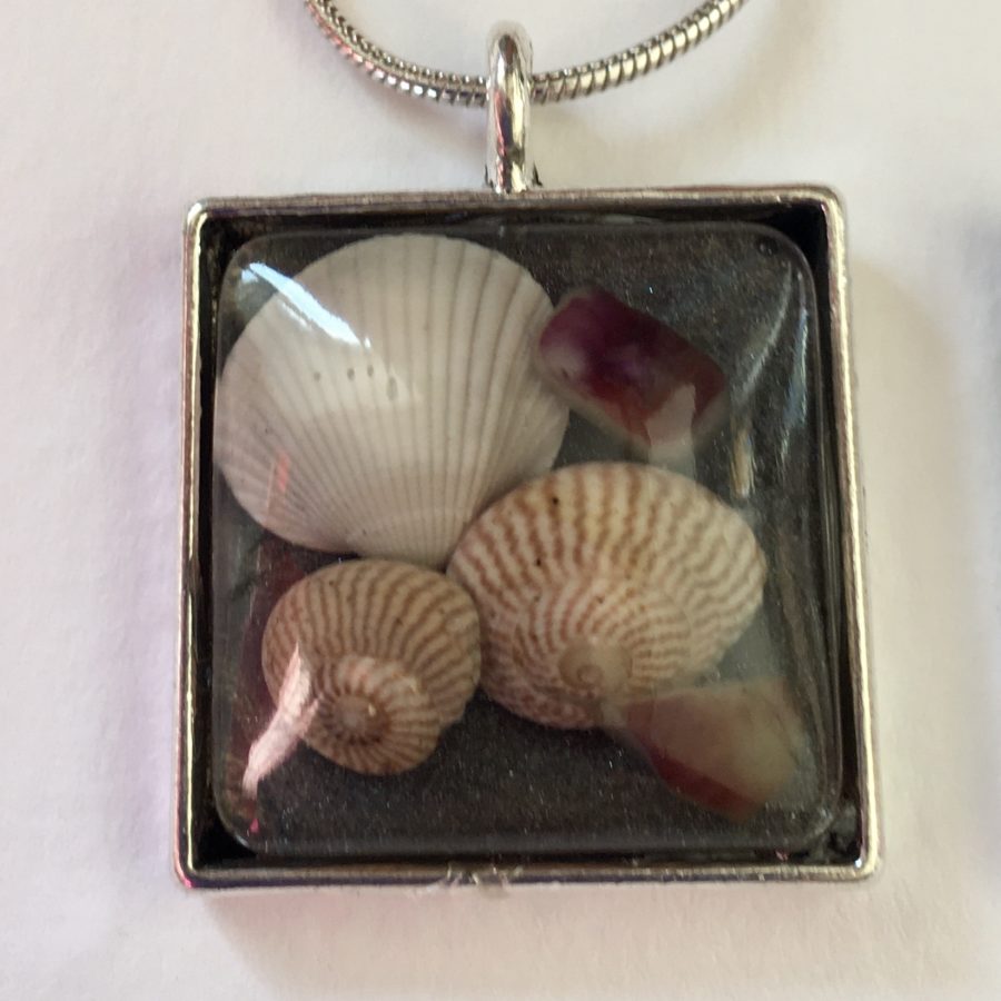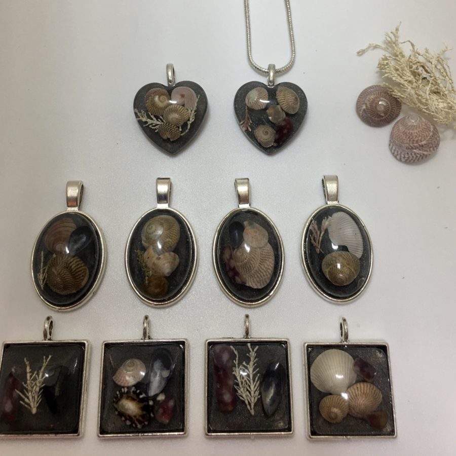 These pendants feature handpicked beach finds collected from beauty spots around The Shetlands coast, captured for you to treasure. Every pendant is slightly different with a combination of silver shells, white seaweed and sea urchin shell. Choose your preferred shape using the drop down menu - square 2.5 cm or 3 cm, oval 3.5 long, heart 2.5cm. Also choose from a black adjustable cord (17-20 inch) or 1.2 mm thick sterling silver snake chain. If choosing a sterling silver chain please state your shape and length of chain in the comment box on ordering - 16”, 18”, 20” & 22”.
