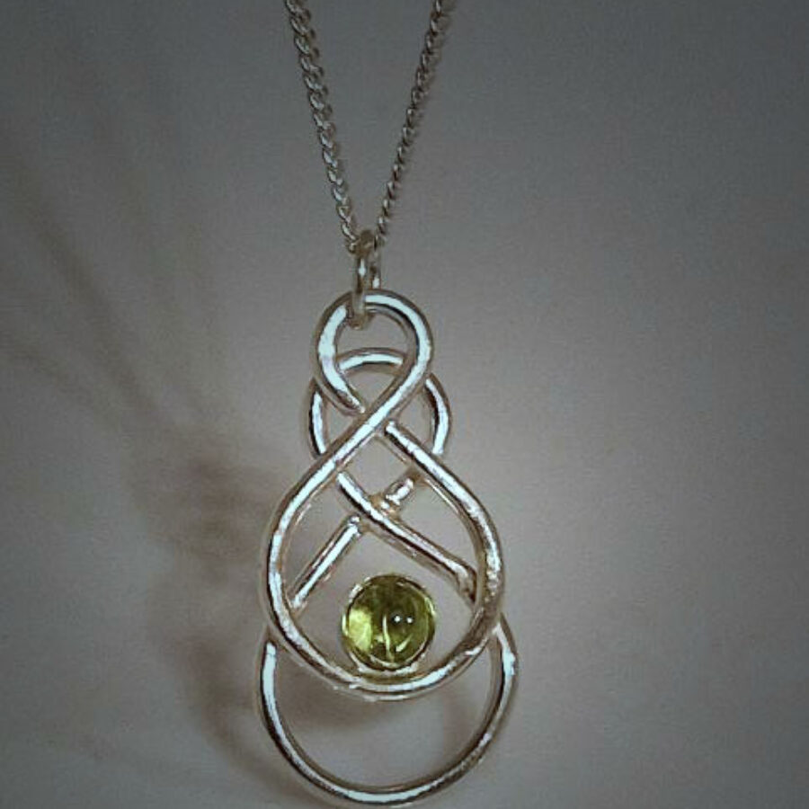 A beautiful pendant featuring a peridot set in sterling silver knotwork on an 18" sterling silver chain. All items are gift boxed with recyclable packaging.