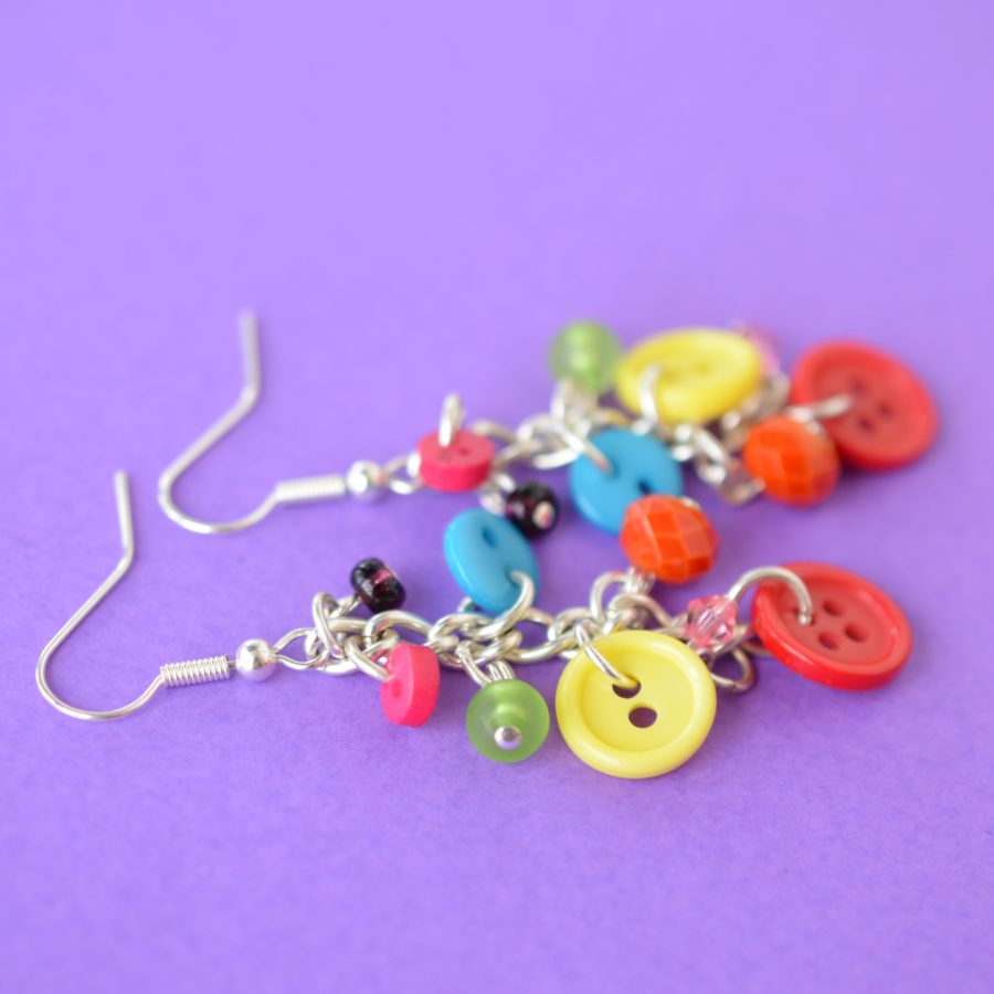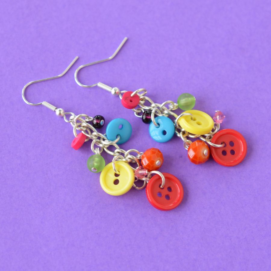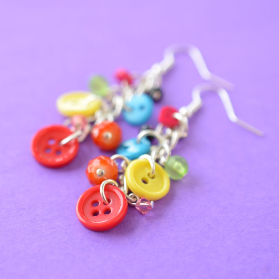 Rainbow Button & Bead Earrings