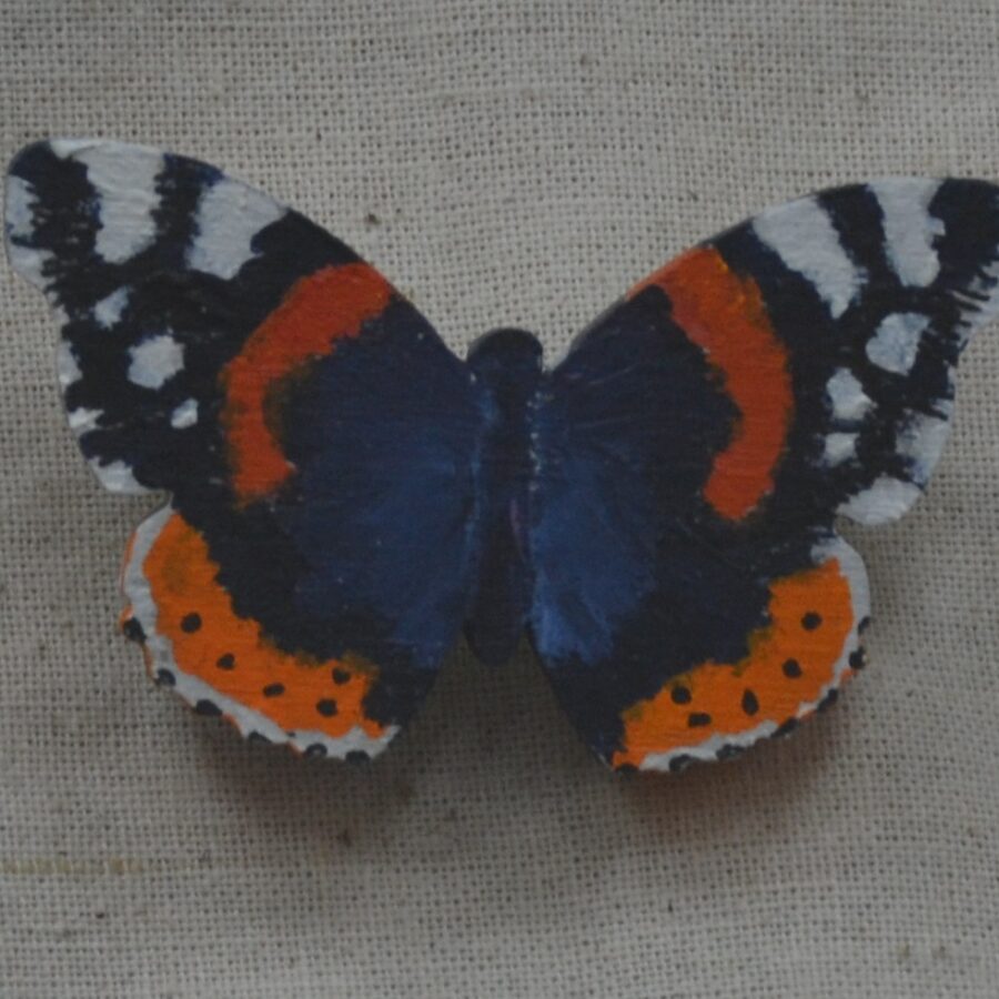 Original acrylic painted brooch of a red admiral butterfly.