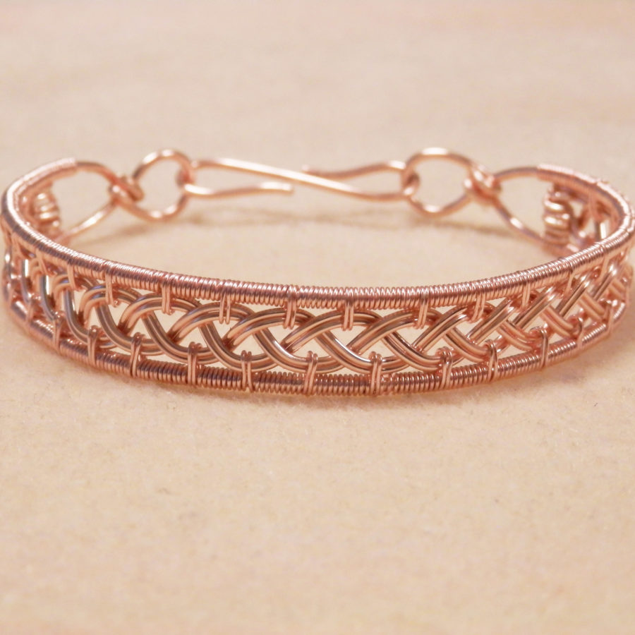 Beautiful handmade bracelet made to order especially for you! The bracelet is made using a Celtic weave pattern with lovely rose gold plated copper wire. This bracelet fastens with a matching handmade ‘s’ hook clasp.