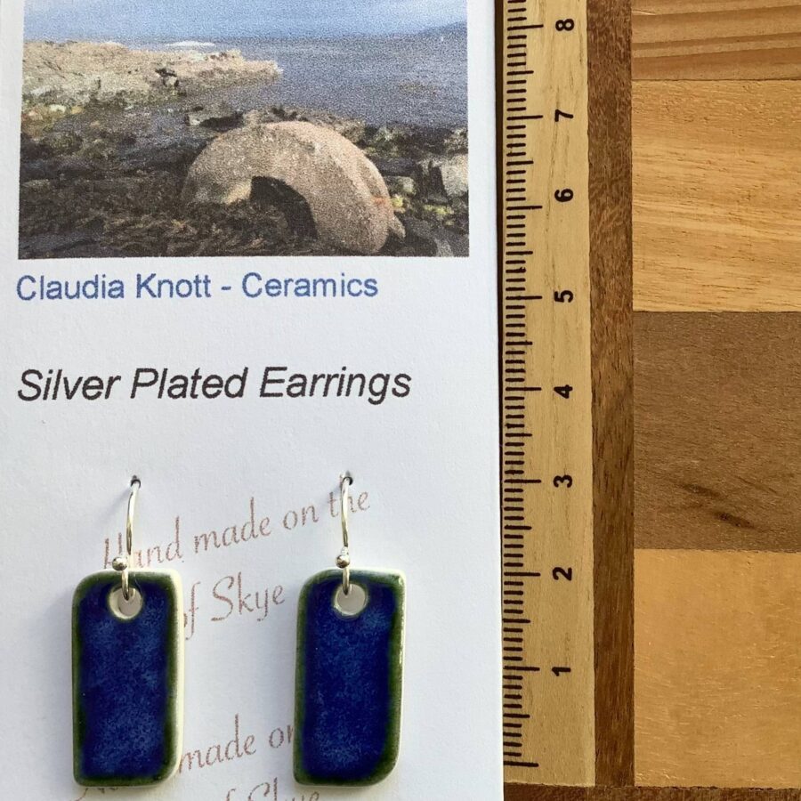 Scandinavian Blue Glaze Rectanglar Ceramic Earrings