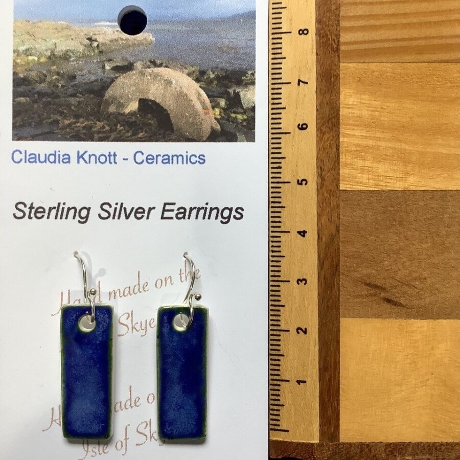 Scandinavian Blue Glaze Rectangular Ceramic Earrings