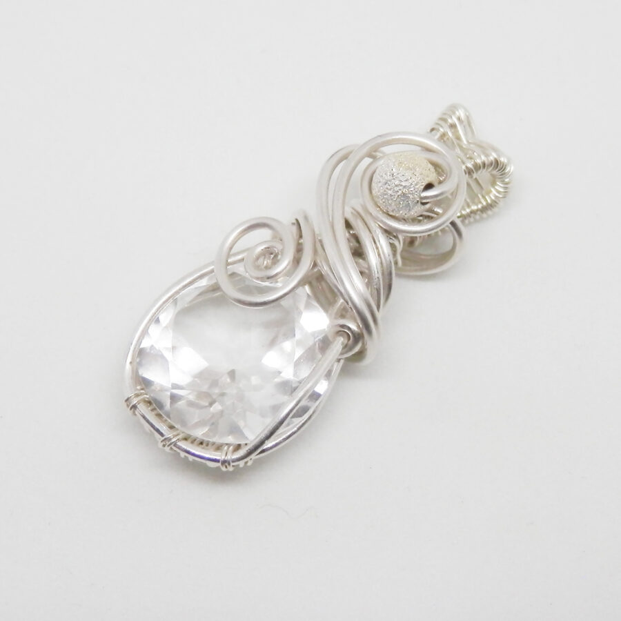 This is a beautiful faceted clear quartz gemstone has been wrapped in 925 sterling silver wire to make into a gorgeous pendant.