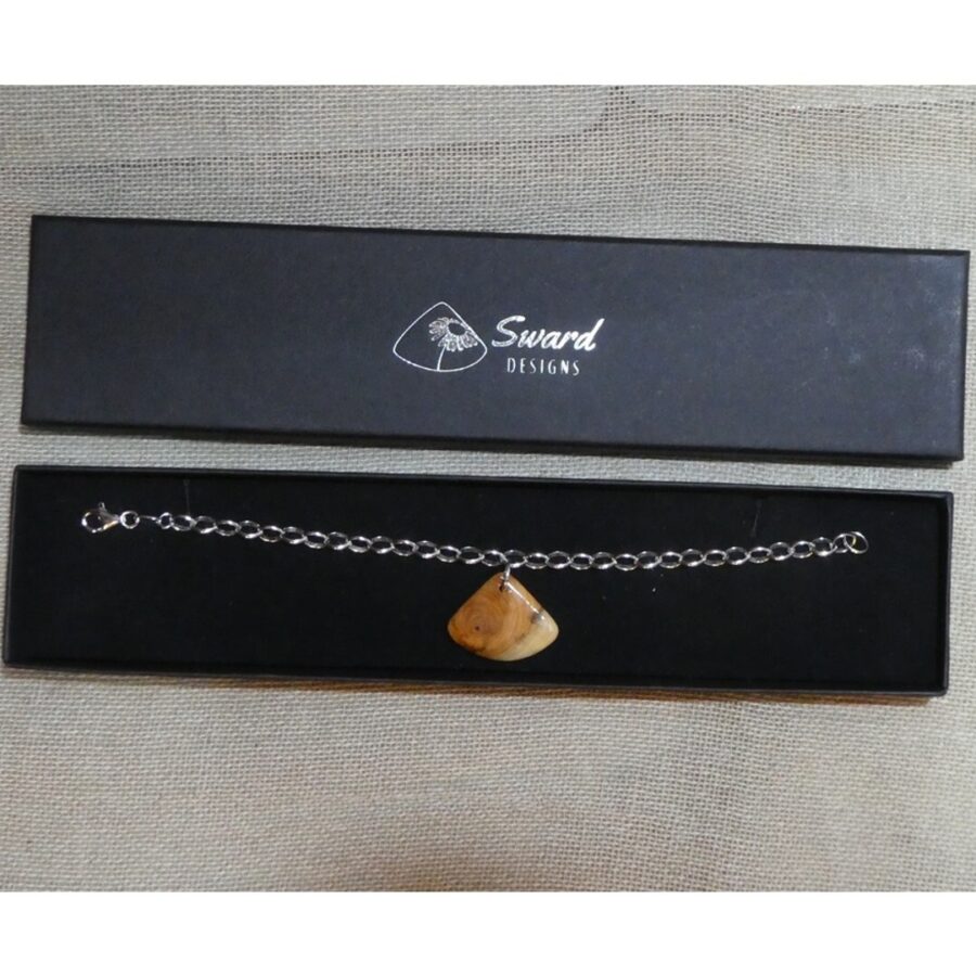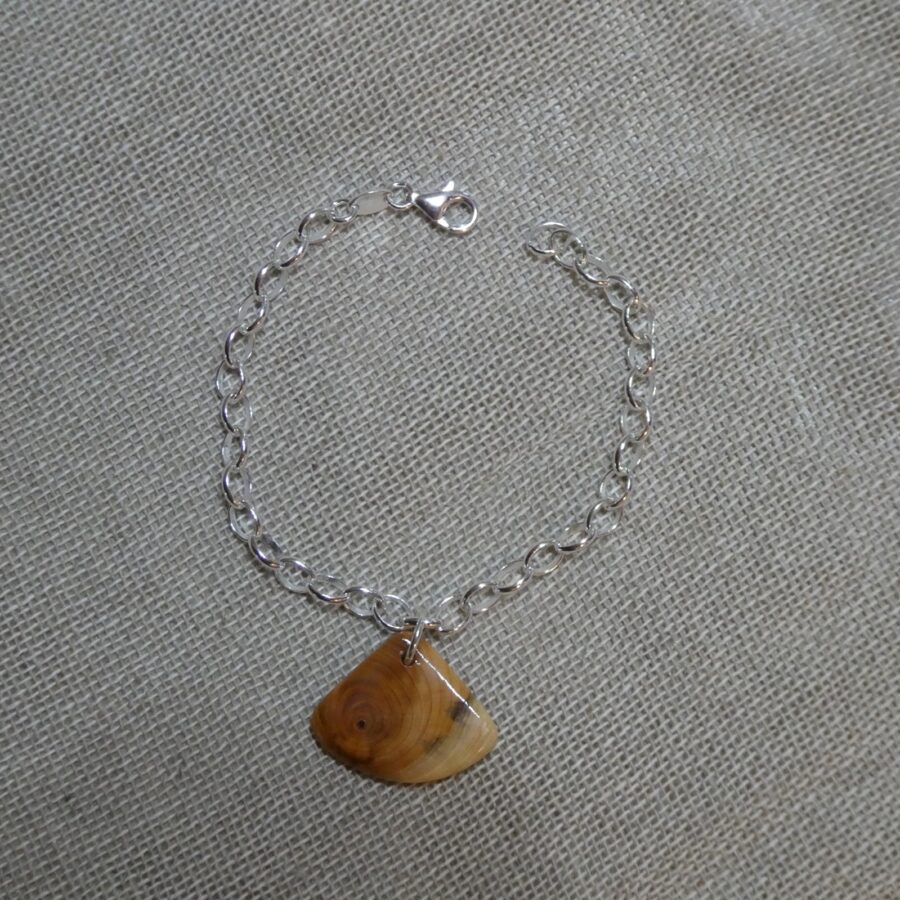 A charming sterling silver bracelet with single yew wood fan shaped charm.