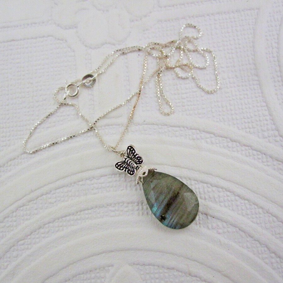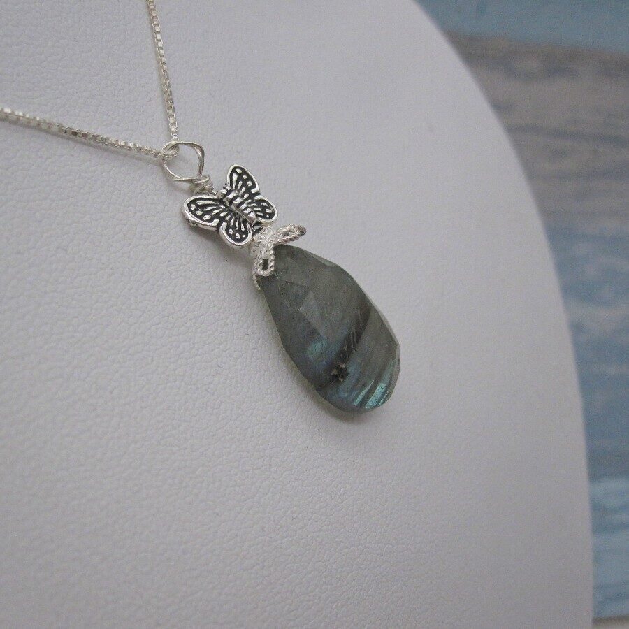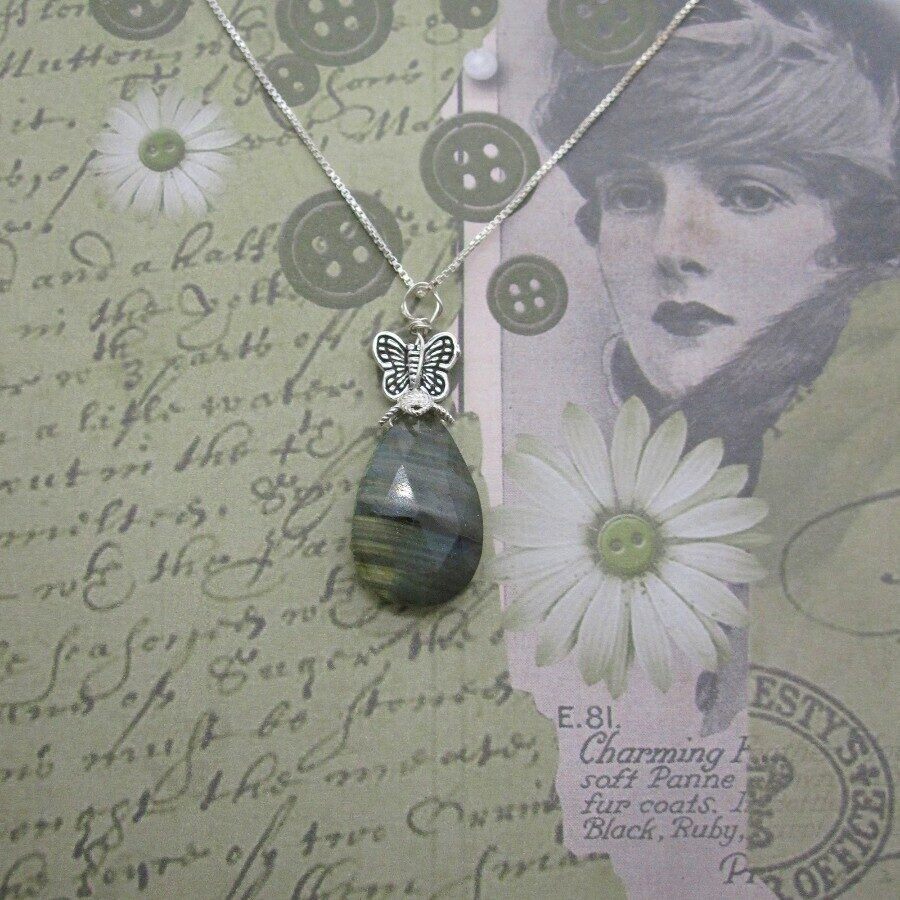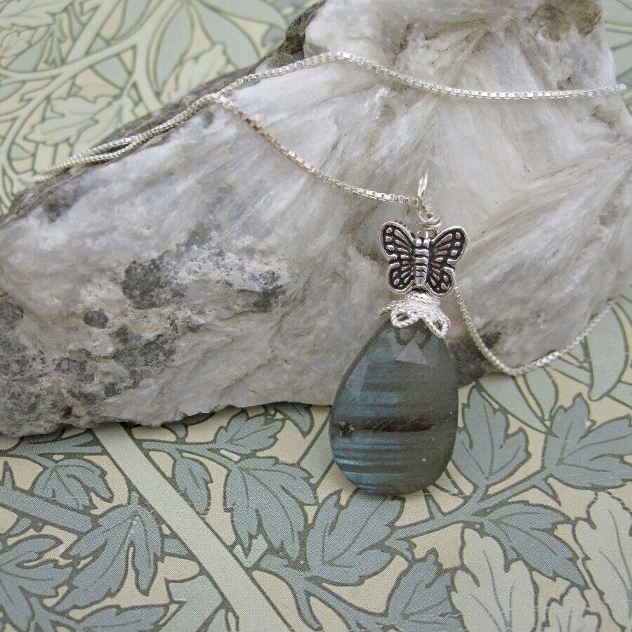 Combining the shimmer of labradorite with the symbol of the butterfly, this pendant makes a great gift to for anyone setting off on a new direction in life – or to celebrate the return of hope. Butterflies signify freedom, joy, and liberation and act as a messenger of hope, whilst the gemstone labradorite is believed to unleash the power of the mind and aid in overcoming limitations. The gemstone’s beautiful shimmer recalls butterfly wings as well as the elusive Northern Lights.