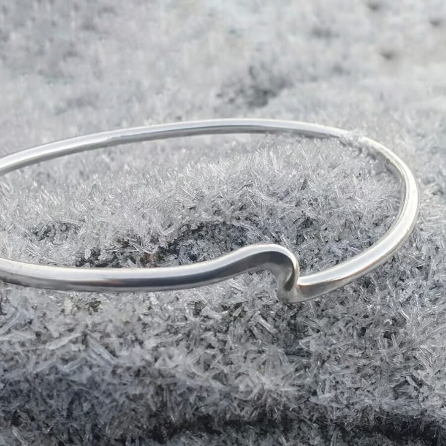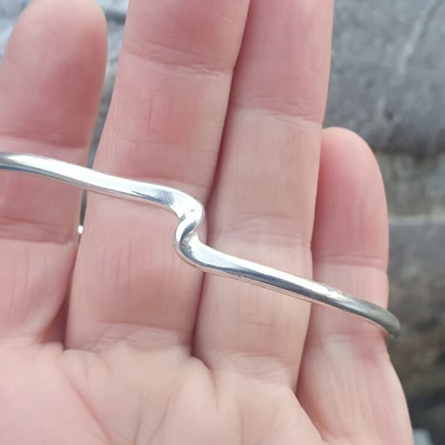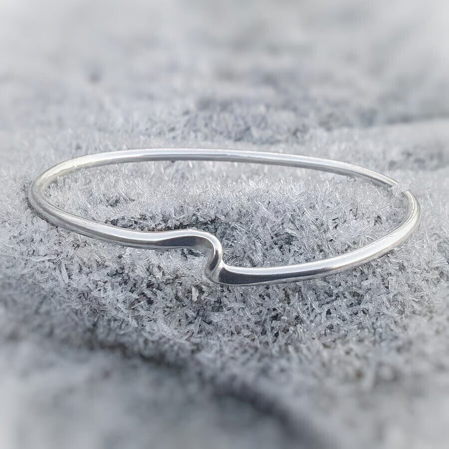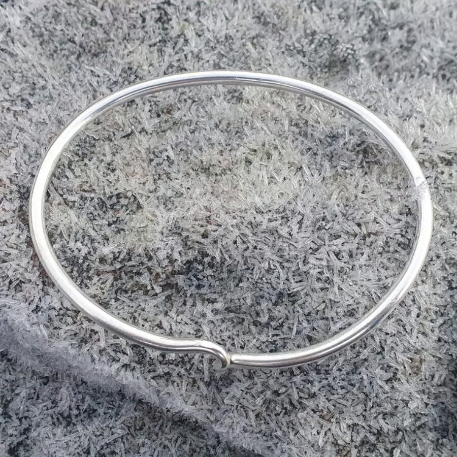 This beautiful bangle is made from solid sterling silver. It has a 3mm round diameter that has a lovely flowing twist in the middle. The bangle is oval with an inside diameter of 7 cm by 5.5 cm so will fit a medium sized hand. It comes gift boxed and sent via Royal Mail special delivery.