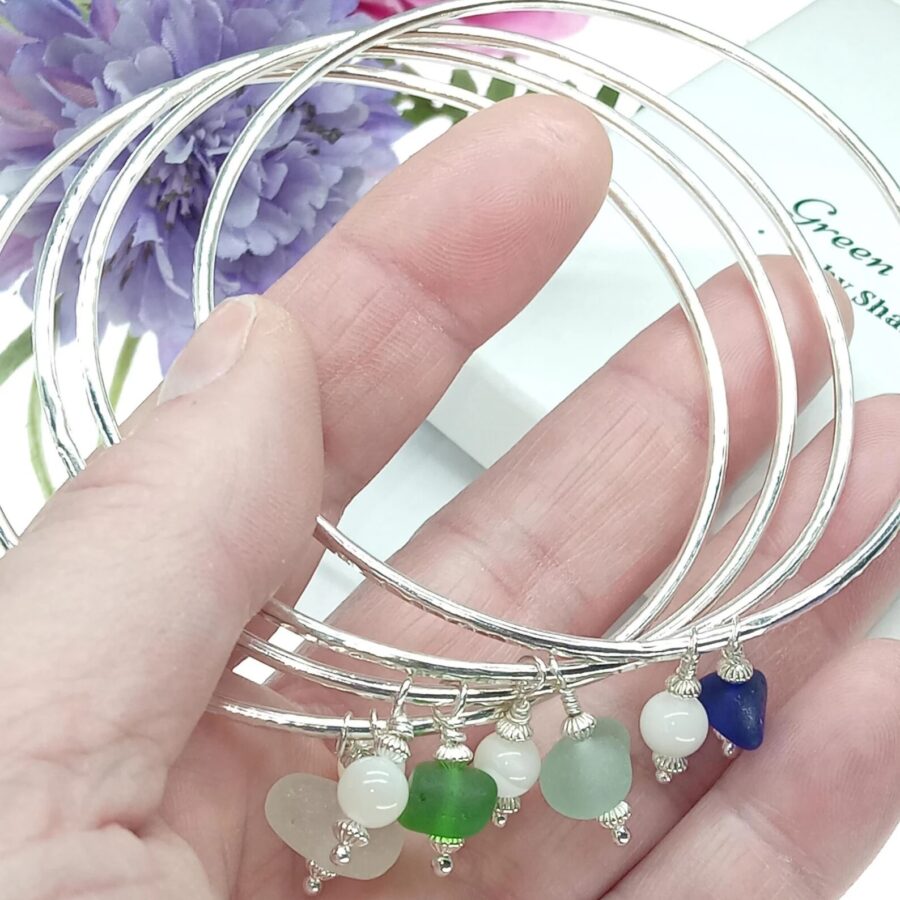 NB. all bangles are unique due to no sea glass being the same. The images are just examples, the product you will receive will be similar but not exactly the same. Please don't hesitate to contact us if you require photos of the exact product you will receive.