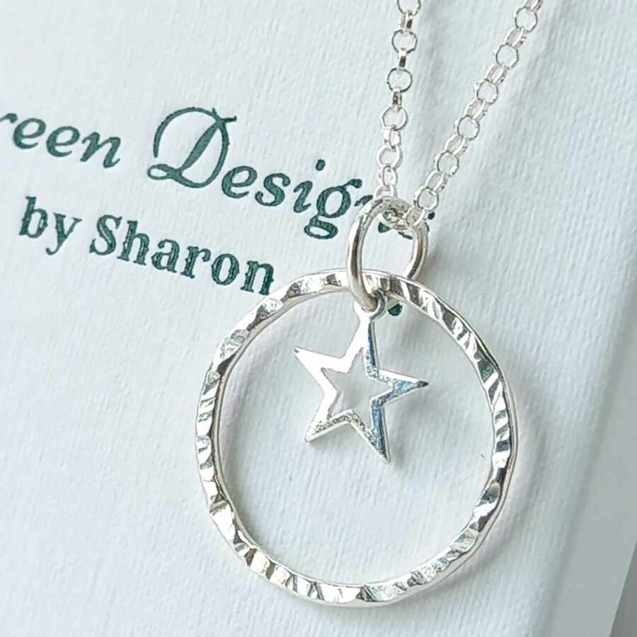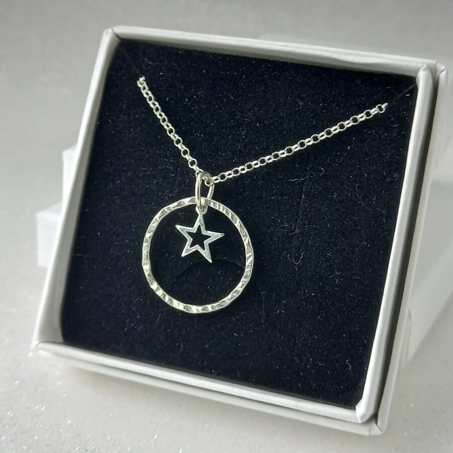 A beautiful sterling silver open heart charm that hangs beautifully inside a handmade textured sterling silver hoop measuring between 2 - 2.5 cm. The hoop moves freely inside the jump ring so is great to fiddle with. This makes this the perfect fidget/worry necklace for someone special.