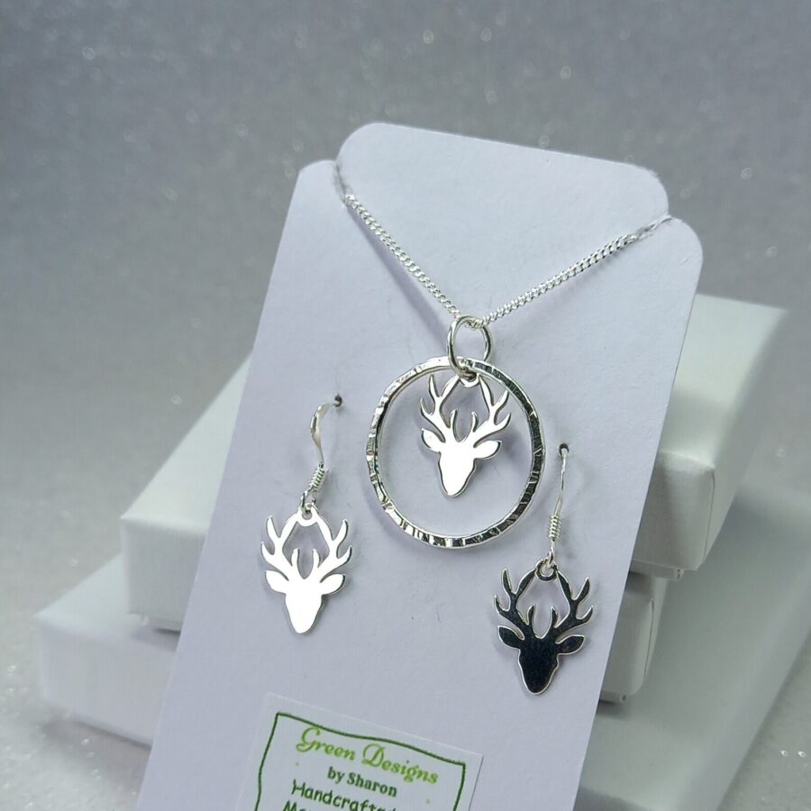 A beautiful sterling silver stag charm that hangs beautifully inside a handmade textured sterling silver hoop measuring between 2 - 2.5 cm. The hoop moves freely inside the jump ring so is great to fiddle with. This makes this the perfect fidget/worry necklace for anyone who loves stags. Comes with matching earrings to make a charming set.