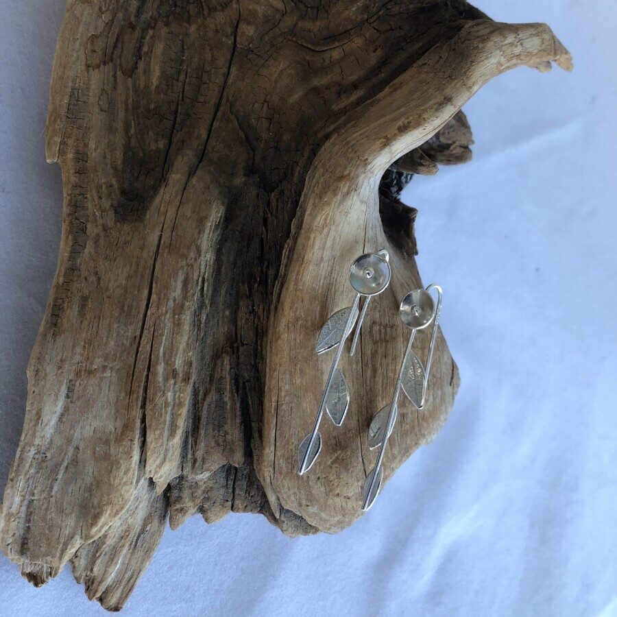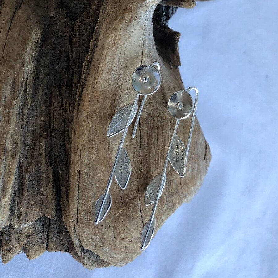These beautiful earrings are hand made and designed by Lorraine of Twisted Thistles. These sterling silver drop earrings feature leaves with a concave dome with ball detail.