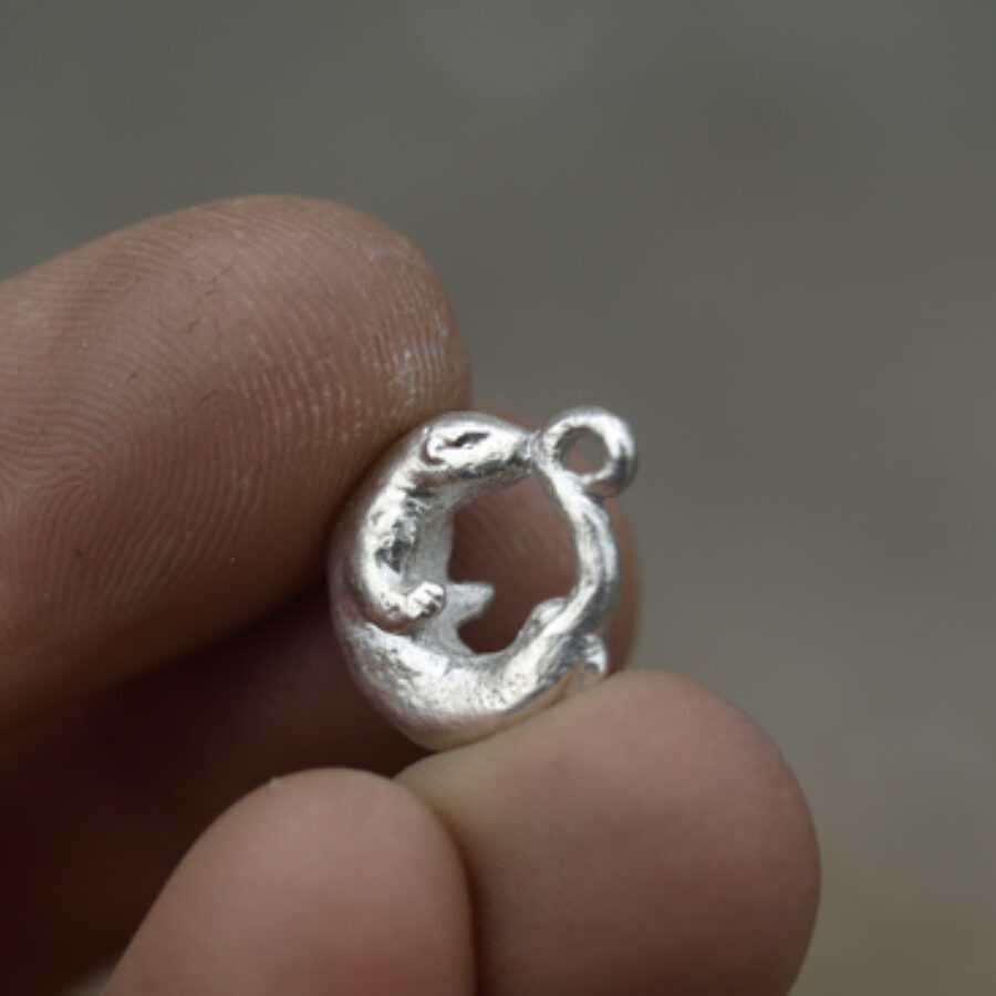 These little swimming otter earrings are handmade in sterling silver. Two sizes available either approximately 12 mm or 15 mm wide and they hang from sterling silver ear wires. They are hallmarked on the back by Edinburgh Assay Office. This item is gift boxed. Choose your preferred size using the drop down menu.