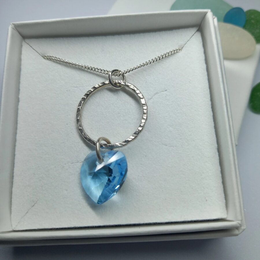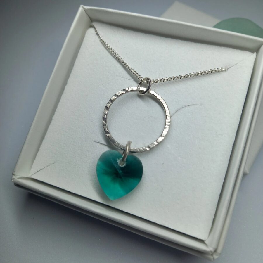 Aqua Sea Glass Stacker Sterling Silver Necklace