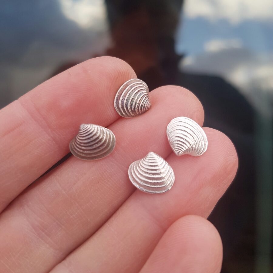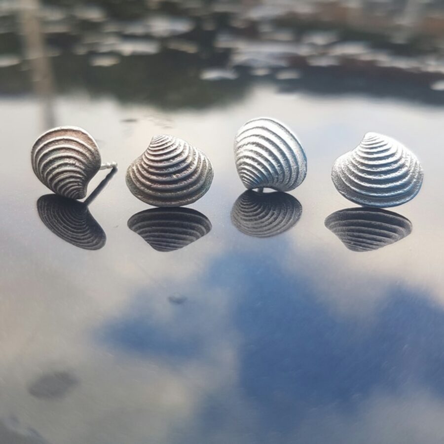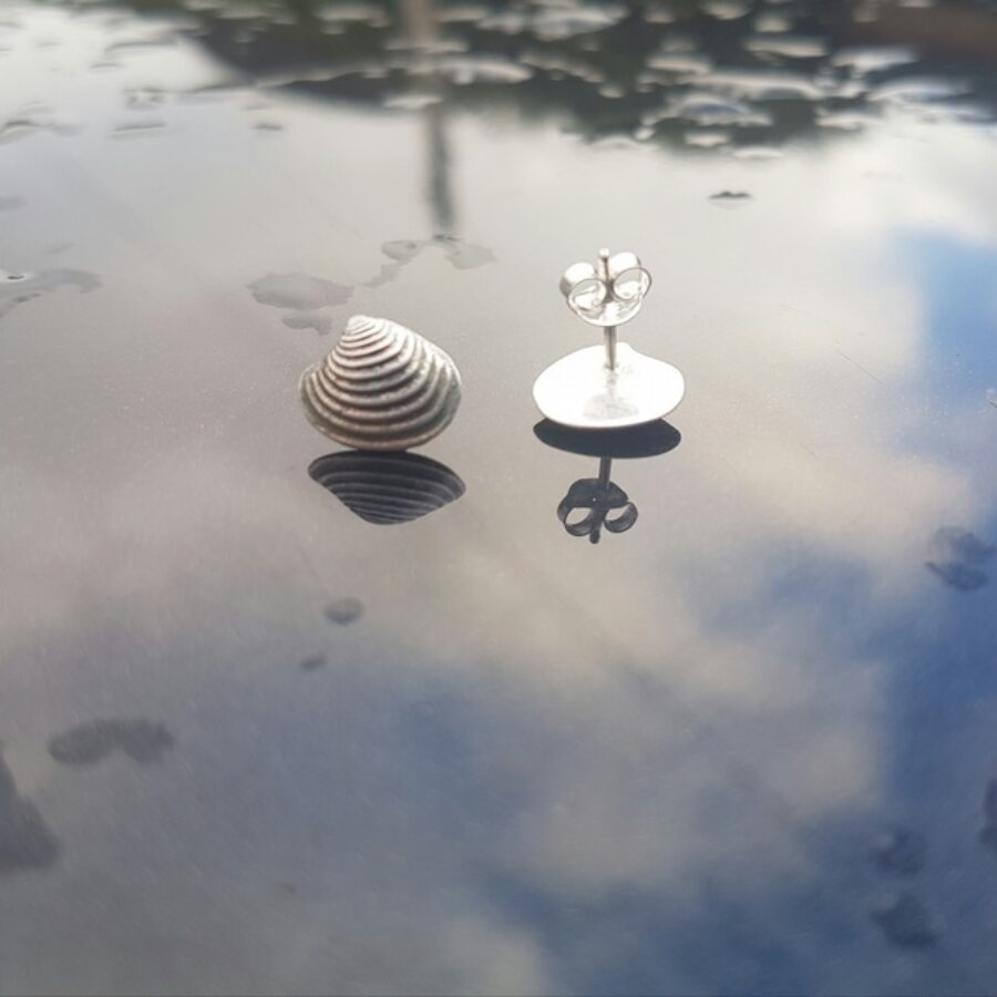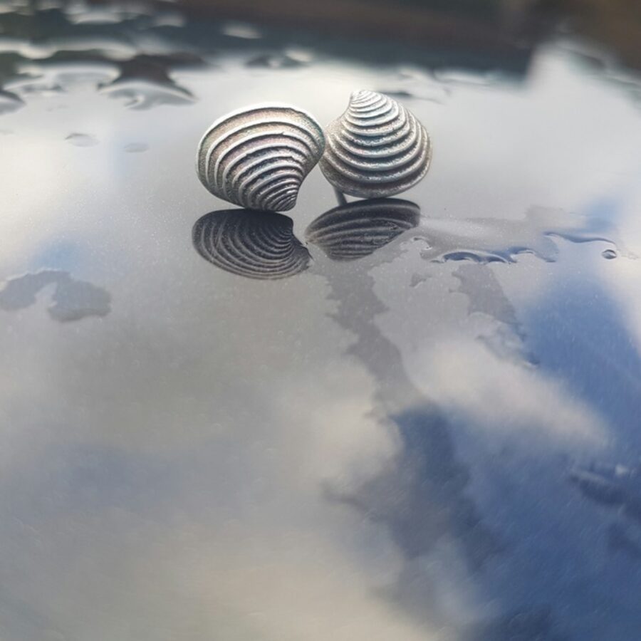 These gorgeous netted whelk studs are solid fine silver, with sterling silver posts and scrolls. They are available in either a bright silver or given a patina to darken and highlight their stripes. Select your preferred version using the drop down. They will come gift boxed.