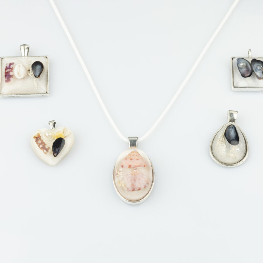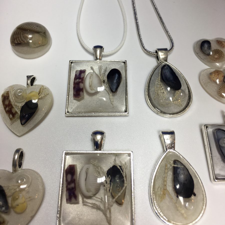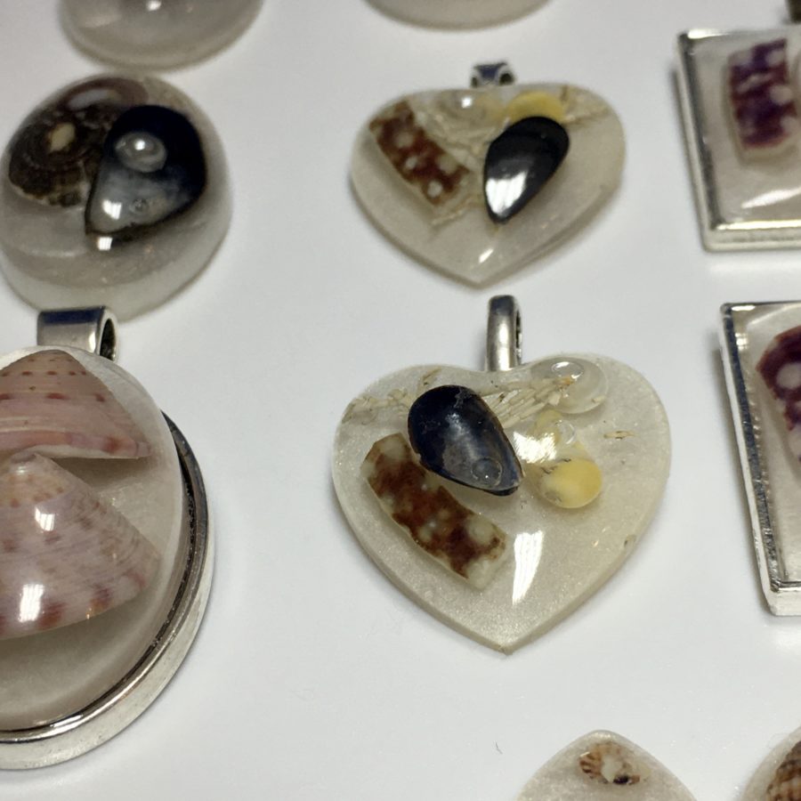 These pendants feature handpicked beach finds collected from beauty spots around The Shetlands coast, captured in clear resin for you to treasure. Every pendant is slightly different with a combination of silver shells, white seaweed and sea urchin shell. Choose your preferred shape - square 2.5 cm or 3 cm, oval 3.5 long, heart 2.5cm. Also choose from a white adjustable cord (17-20 inch) or 1.2 mm thick sterling silver snake chain. Please choose your preferred shape and chain type using the drop down menu, and if choosing sterling silver chain state the length of chain in the comment box on ordering.
