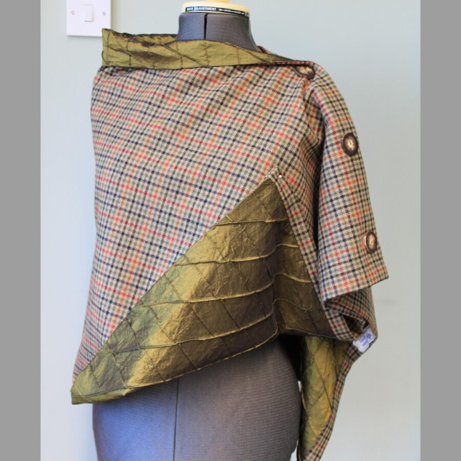 Autumnal Check Tweed Cape Poncho