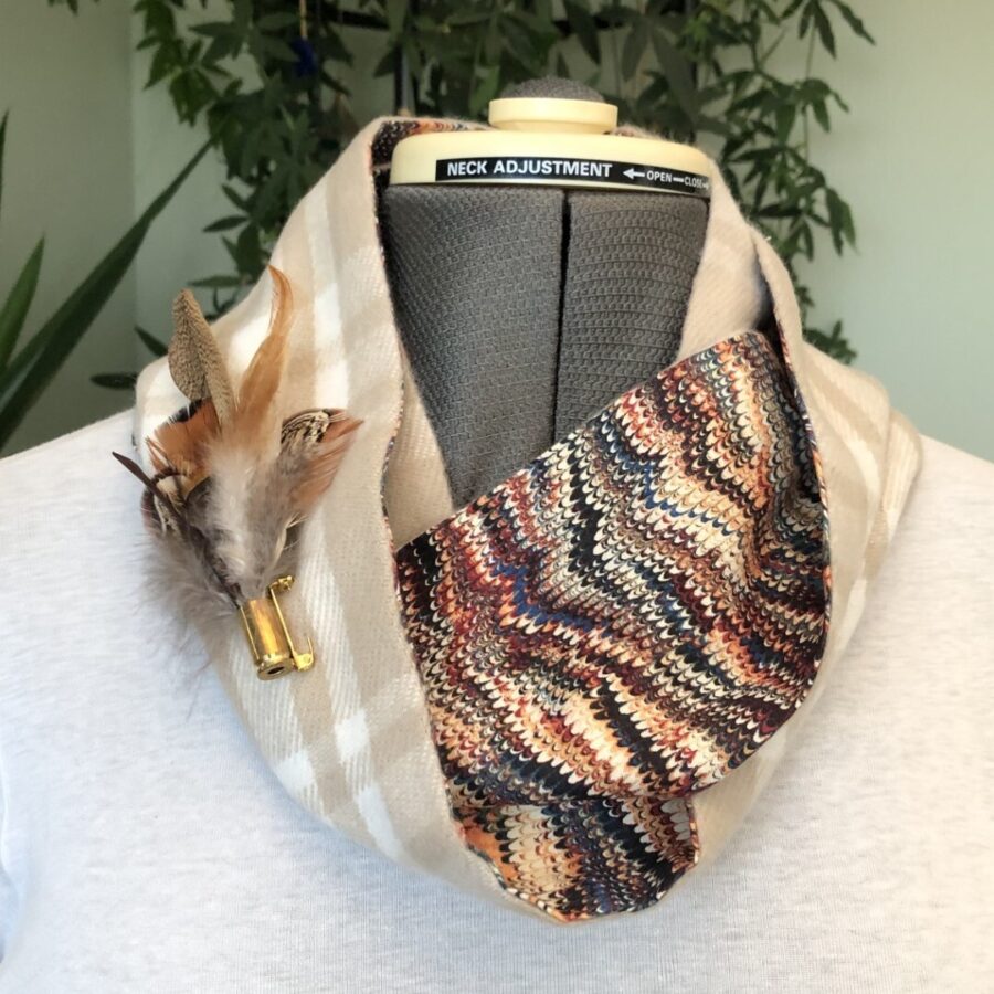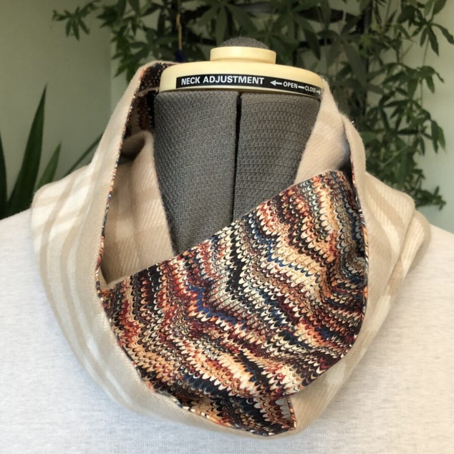 This gorgeous tweed infinity scarf is made to sit neatly around your neck. It has all the comfort and warmth of a normal scarf without the bulk. Colours are carefully chosen to complement each other and the scarf can be worn in a multitude of ways.