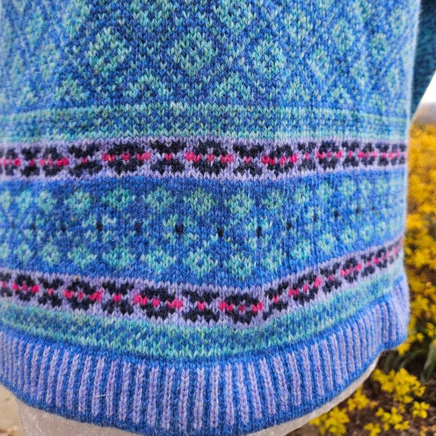 Wool is very breathable, which means less frequent washing. However, when it does need to be washed, it should be hand washed in tepid water, given a quick spin or rolled in a towel to remove excess water, and dried flat. It can be pressed with a damp cloth and gently reshaped, if necessary. Given this wee bit of care, you will be able to enjoy wearing your Whinnyfold Knitwear clothing for years to come.
