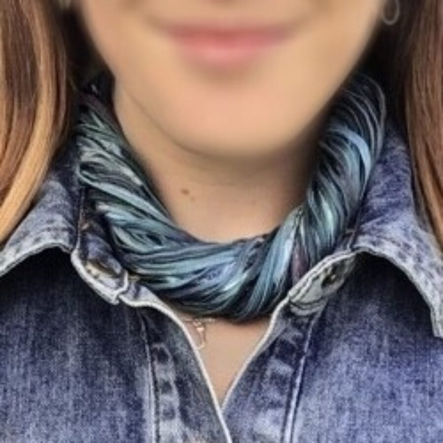 Twisted Scarves are designed to sit softly just below the neckline. Twist by holding the bead caps at the ribbon ends to create the desired length and shape. Open the magnet by holding adjacent beads and gently pull. The magnetic clasps are nickel free. Ideal to wear to compliment any outfit or to match your shoes or handbag etc to complete your desired look. Easy to wear and so suitable for anyone who struggles to fasten necklaces etc due to arthritis or other medical conditions.