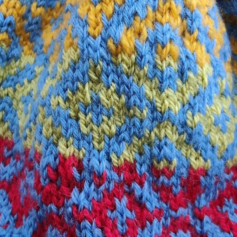 The bright colours in this beautiful fairisle hat make this a must have for any young child. Hand knitted in premium acryllic yarn means it's practical and hard wearing, as well as being fully machine washable at 30 degrees. Would fit a child up to 12 months old (approximately).