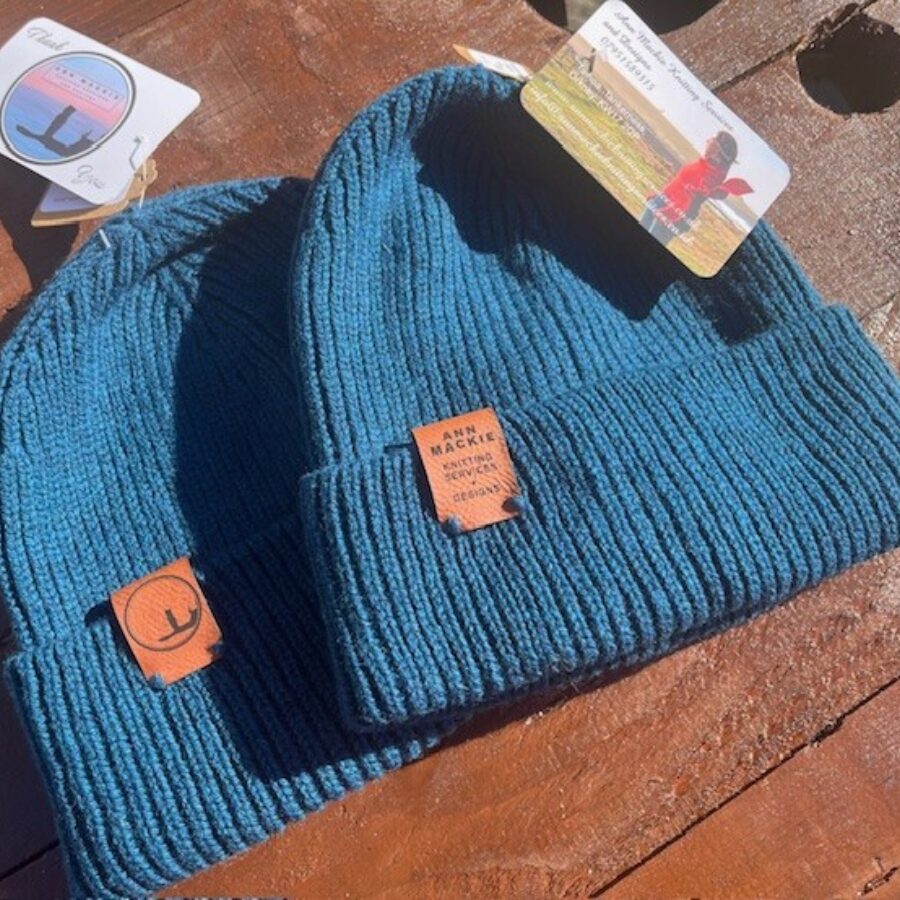 A beautiful diesel ribbed beanie hat made in 100% merino lambswool, with a leather label. Made in Orkney.