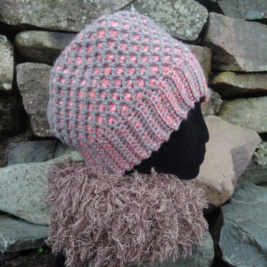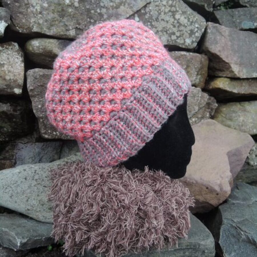 The stunning design of this crochet hat makes it reversible, so you have two hats for the price of one. Each side has a different design. Each hat is unique. The hat is crocheted with 2 contrasting colours, grey and coral, using high quality acrylic yarn. This hat should fit any adult. All this sellers items are made in a smoke free and pet free environment. The hat can be washed in a machine at 30 degrees.